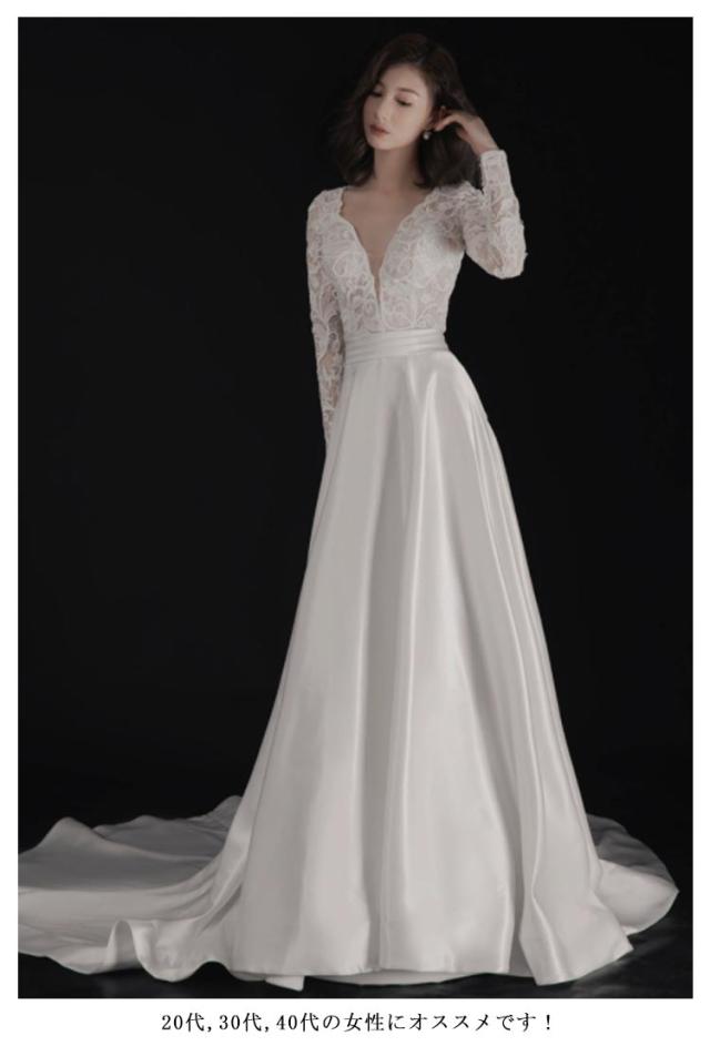 ウエディングドレス ウェディングドレス 袖あり 長袖 レース ドレス Aライン Vネック トレーン付き ドレス ロング 花嫁ドレス 白 ホワイト ブライダル 撮影 海外挙式