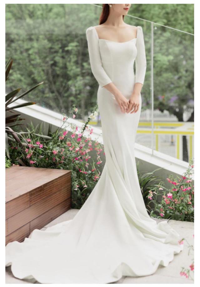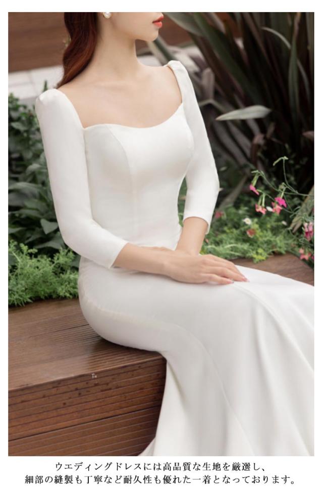 ウェディング ドレス 長袖 七分袖 袖あり ウェディングドレス マーメイドウェディングドレス ウエディングドレス トレーンドレス 二次会 スレンダーライン ファスナータイプ リゾートウェディング ハネムーンフォト