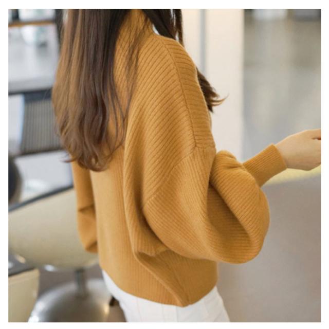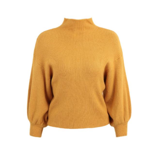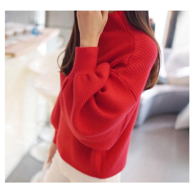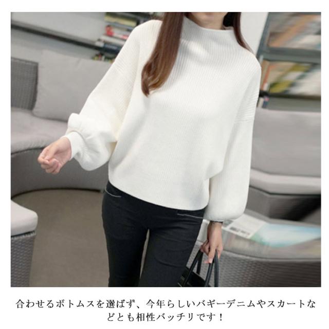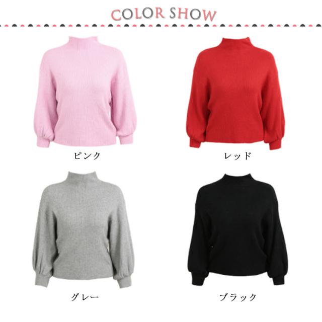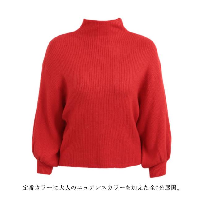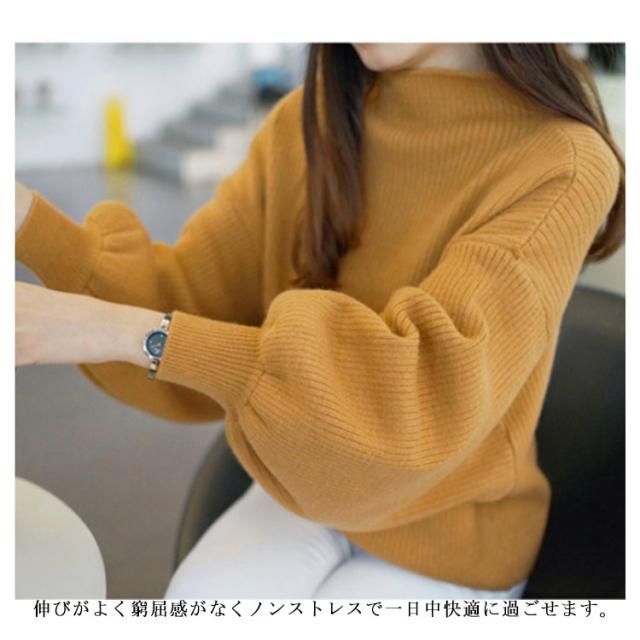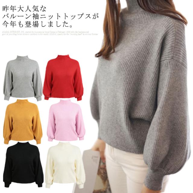 この秋冬はこれ!バルーン袖 ニット ニットトップス ニット セーター ハーフハイネック ボトルネック バルーンスリーブ リブニット モックネック ゆるニット 無地 秋 冬