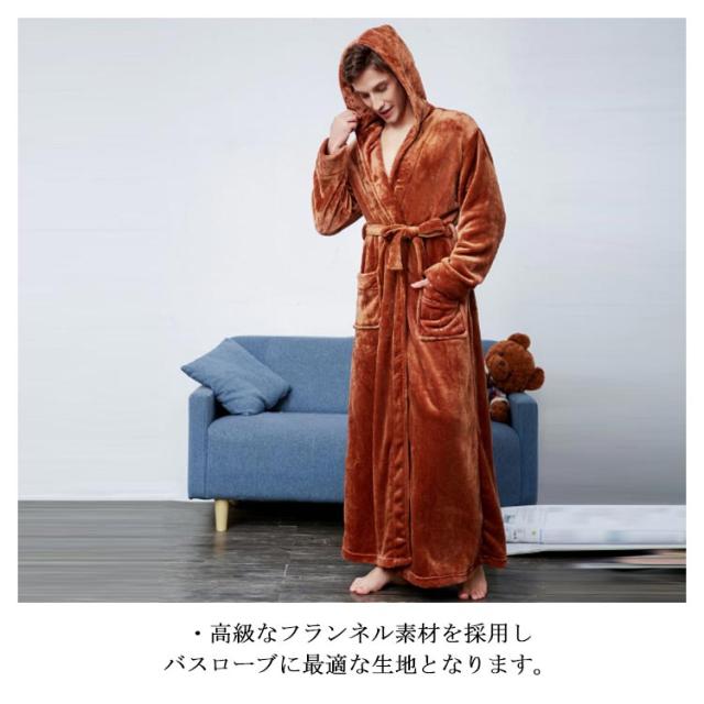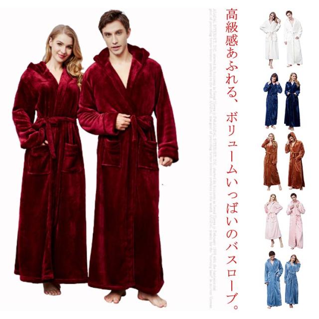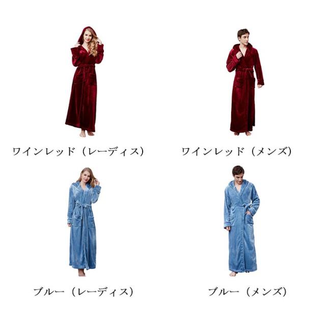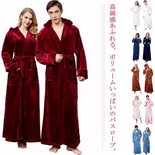 バスローブ パジャマ カップル用 部屋着 ロング丈 メンズ レディース ルームウエア ナイトガウン 毛布 厚手 フード付き あったか 帯巻き 防寒 暖かい お風呂上り