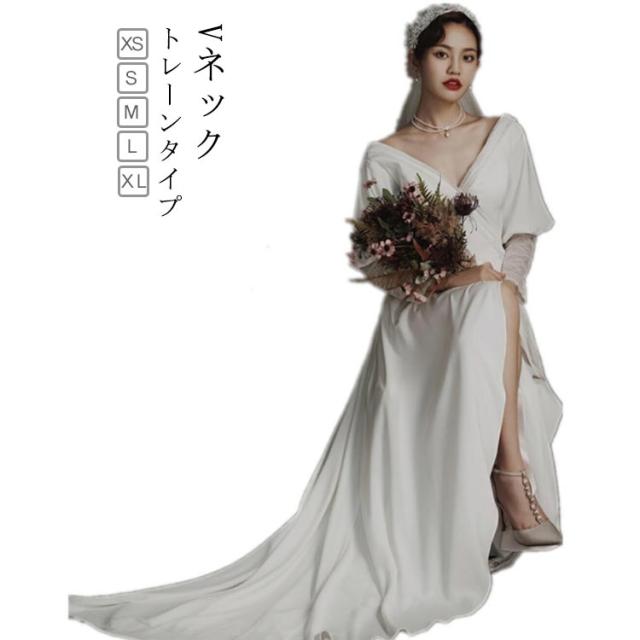 長袖 ウエディングドレス ウェディングドレス 袖あり トレーンタイプ Vネック 背中空き トレーンドレス 披露宴 結婚式 演奏会 発表会 海外挙式ドレス