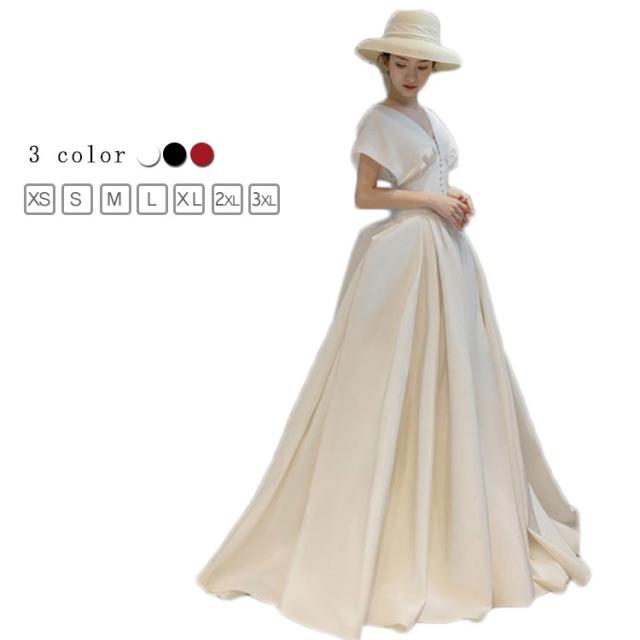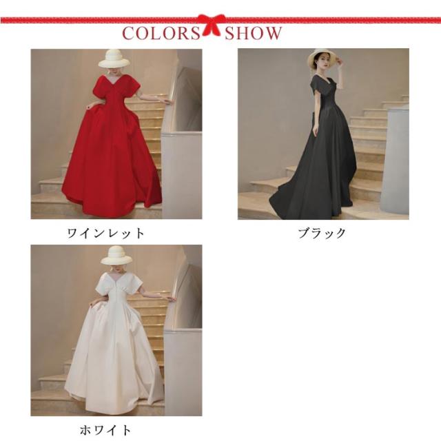パーティードレス ロングドレス ロングワンピース 半袖 ドレス ウェディングドレス ウエディングドレス Aライン Vネック パーティドレス ロング丈 演奏会用 舞台衣装 ステージドレス 20代 30代 40代 ホワイト ワインレット ブラック