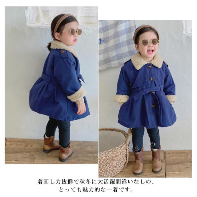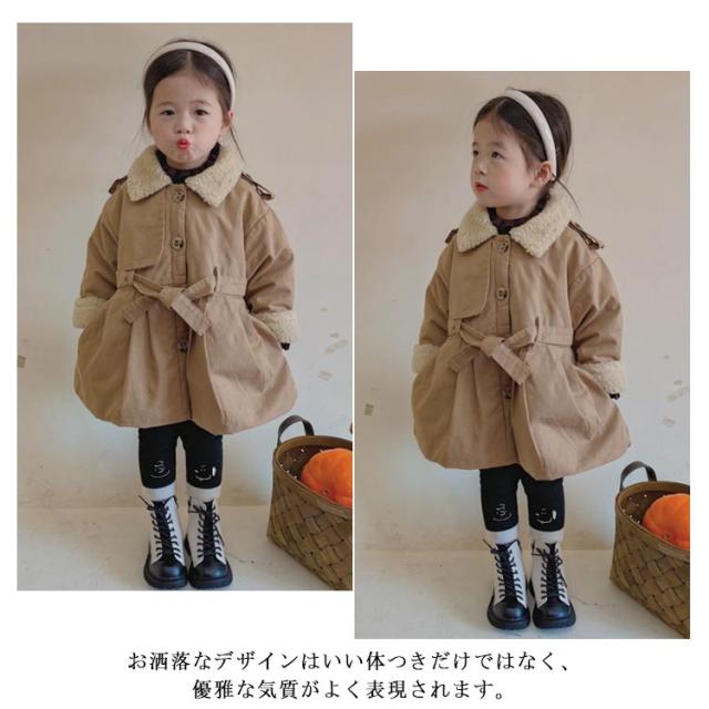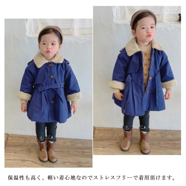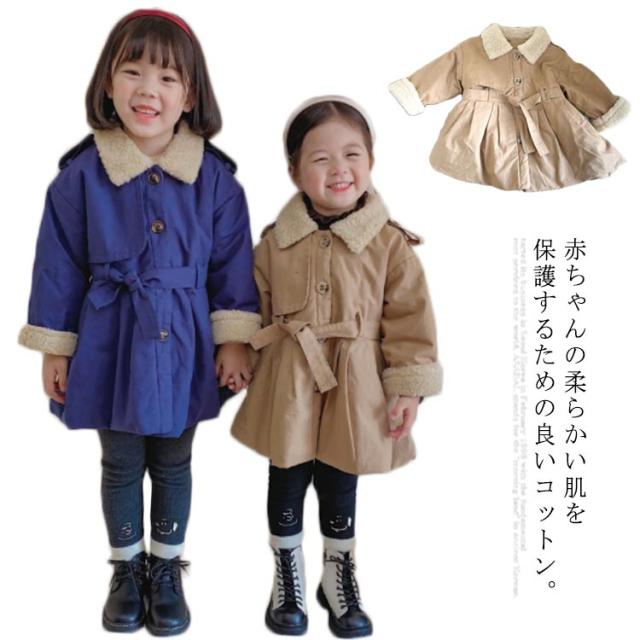 子供服 綿コート 綿 ジャケット アウター コート トレンチコート 上着 綿服 冬服 綿入り 裏ボア ミドル丈 子ども服 女の子 ガールズ キッズ ベビー 防寒 保温 厚手 通学 可愛い 90 100 110 120 130
