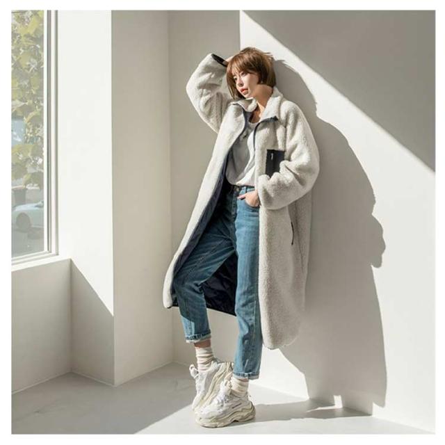 | 大人気のボアロングコートが今年も登場! ボリュームのあるボアにスポーティーなポケットがアクセントに 風合い柔らかく保温性抜群なボアを全面に使用したことで軽くて暖かい一着。 シバーシブルデザインなので一枚で2通りを楽しめる。 全体的にはゆったりとした作りで体型カバーもできます。 スカートからパンツまで、どんなボトムスとも合わせやすいのが魅力。 体をすっぽりと包んでくれるロング丈だから真冬でも大丈夫。 | |