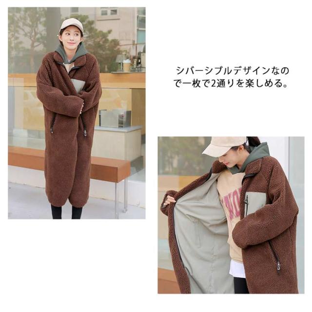 シバーシブルボアコート ボアコート ロング丈 ボアロングコート レディース アウター コート 秋冬 冬物 暖かい 立ち襟 防寒 大きサイズ カジュアル