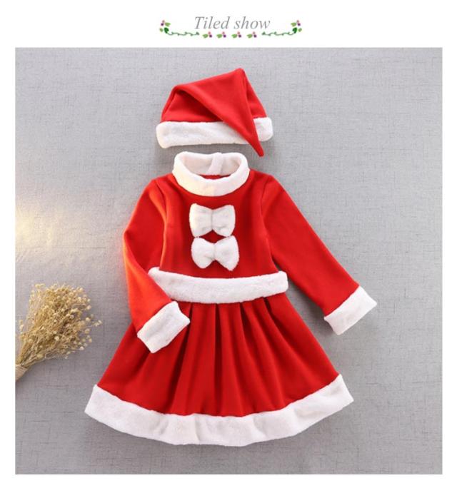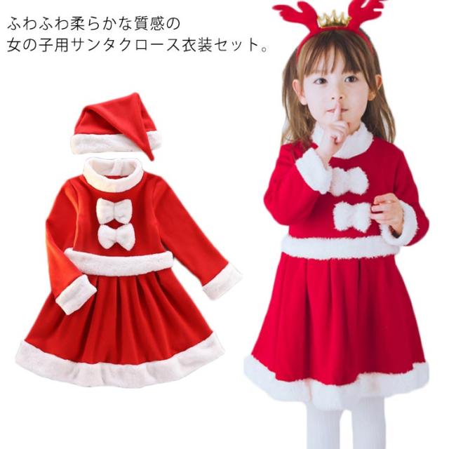 コスプレ クリスマス衣服 子供服 サンタ コスチューム サンタクロース 女の子 ワンピース 帽子付き 2点セット 可愛い イベント 仮装 幼稚園 パーティー プレゼント
