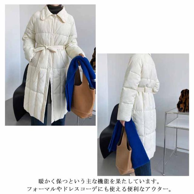 中綿コート レディース コート 防寒ジャケット アウター 中綿 キルティングコート 長袖 膝丈 秋冬物 体型カバー ベルト飾り 折り襟 学生 大人 オフィス 通勤 温かい カジュアル エレガント
