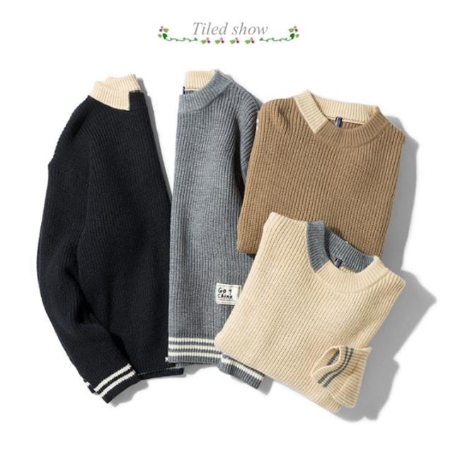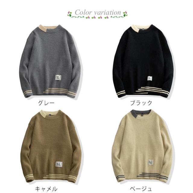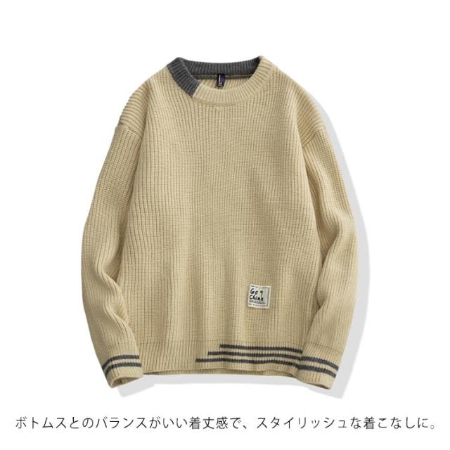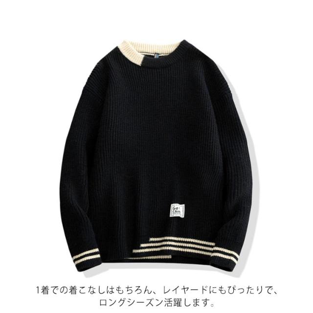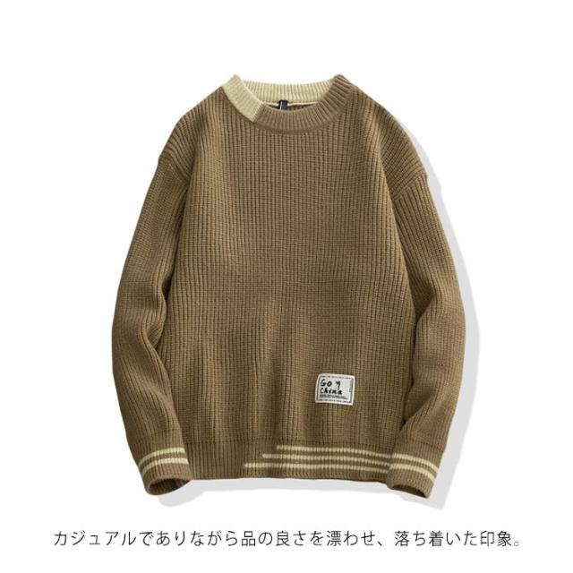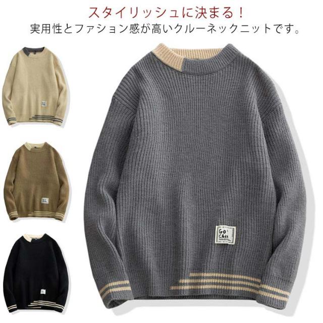 ニットセーター メンズ 長袖 クルーネック ニット トップス カジュアル 厚手 プルオーバー 暖かい 防寒 春秋冬 ゆったり 通勤 通学 メンズファッション