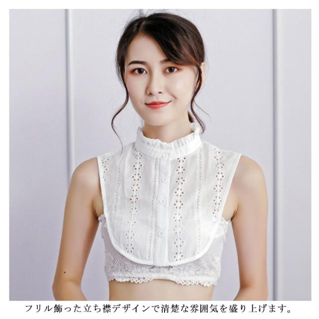 送料無料 つけ襟 付け襟 レディース フリルハイネック付け襟 花柄レース 立ち襟 フリルネック 付け衿 フェイクカラー 透け感 シャツスタイル 重ね着 レイヤード 小物 アクセサリー つけえり 通勤 オフィス 就職