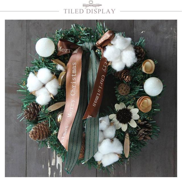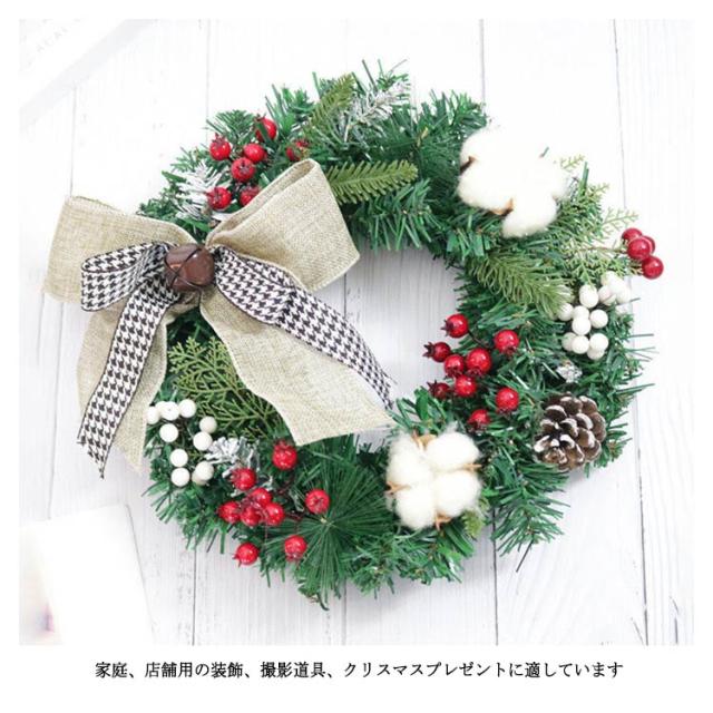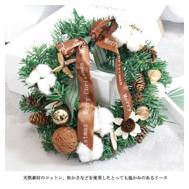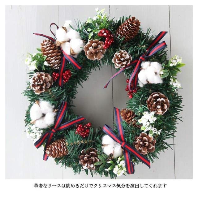 クリスマス リース 玄関 北欧 ナチュラル 豪華 高級 おしゃれ 30cm 壁飾り コットン 松ぼっくり 天然素材 自然 飾り 冬 インテリア ディスプレイ 室内 店舗 装飾 新築祝い ギフト プレゼント