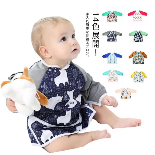 送料無料 ベビー用エプロン ポケット付き 長袖 食べこぼしガード 長袖 防水食事用エプロン 動物柄 新生児 お食事エプロン 子供用 幼児 ベビーエプロン 赤ちゃん 男の子 女の子 ベビー用品 出産祝い 防水服 食べる