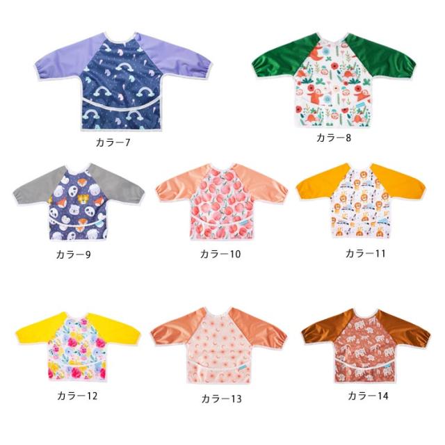 | 手入れ簡単な長袖エプロン。 14色展開! 男の子にも女の子にもおすすめ! キャッチオールポケットは、たくさんの落とした食べ物、パン粉、こぼれをキャッチし、洗濯物の負荷を減らすことができます。 軽くてコンパクトにたためるので、持ち運びにも便利です。外出時にも重宝します。 食事だけでなくクレヨンや粘土、お砂場など汚れそうな遊びでもお洋服をガードしスモック代わりにすることもできるので、食事以外にも活躍してくれそうです。 | |