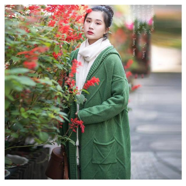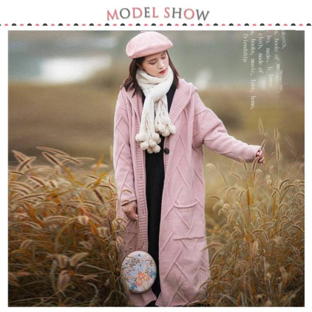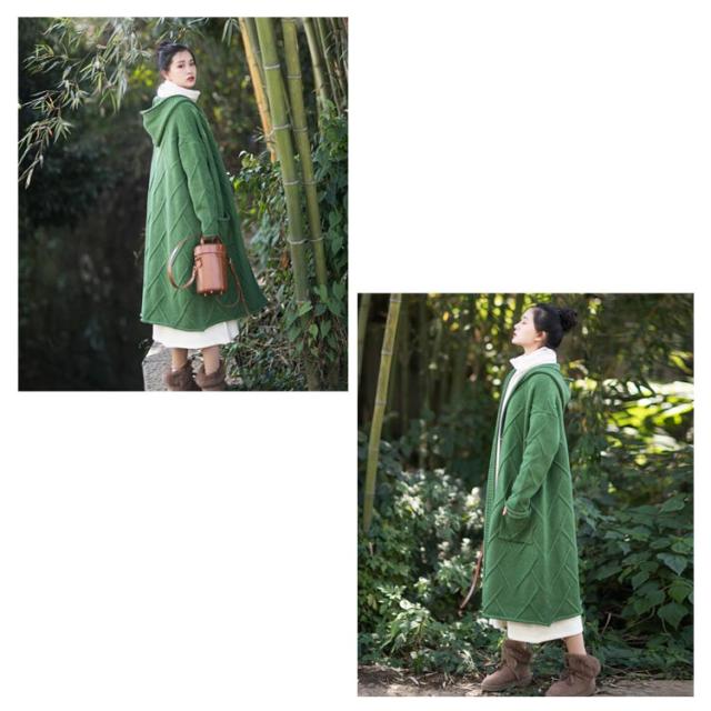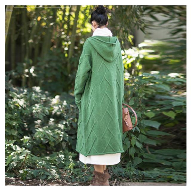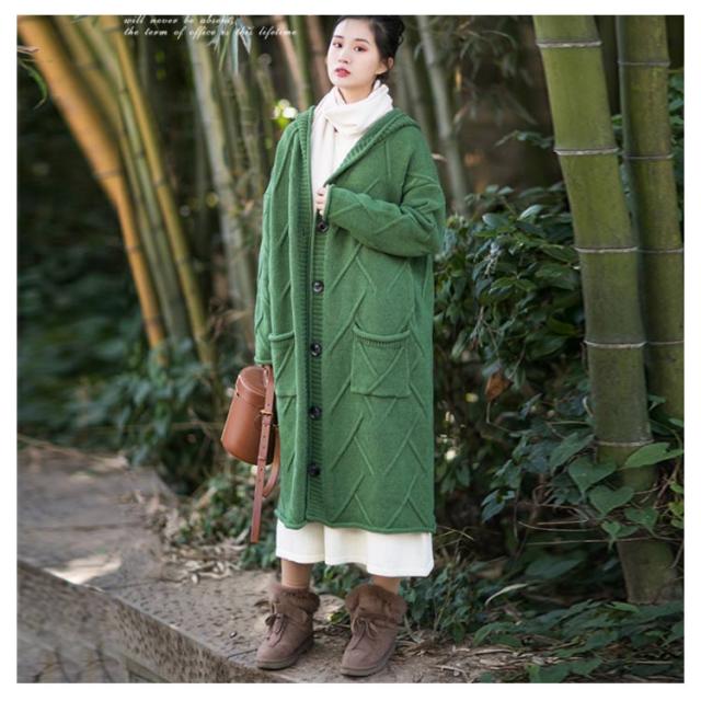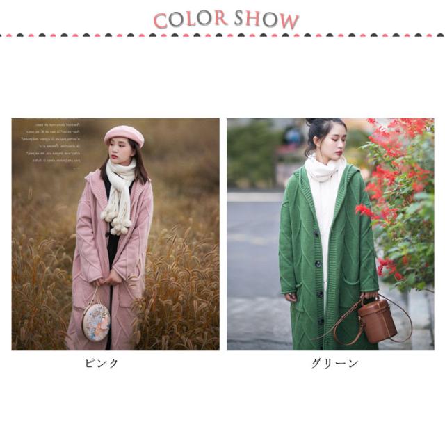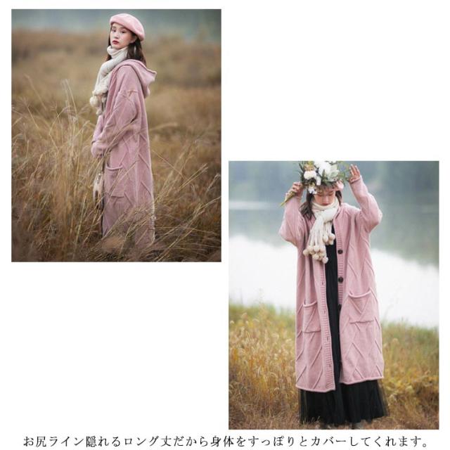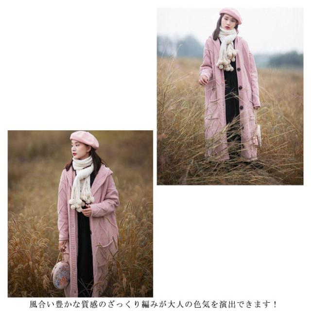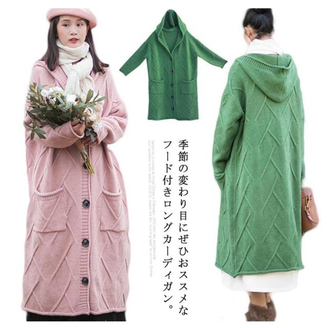フード付きロングカーディガン ざっくり編み カーディガン ロング ニットコート コーディガン ボタン開き セーター ロングカーディガン 厚手 秋冬 ゆったり ざっくり 大人可愛い