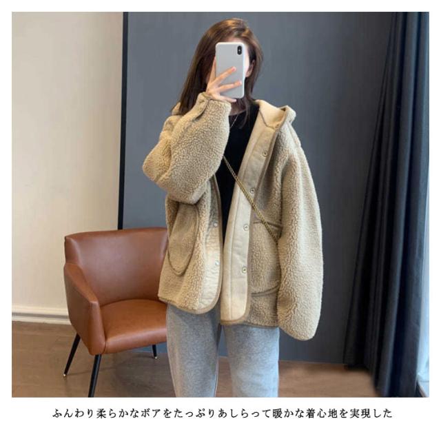 ボアジャケット レディース アウター ジャケット フード付き ボアブルゾン ボア もこもこ 厚手 防寒 ゆったり 可愛い カジュアル 女性 おしゃれ アウトドア 秋冬 普段着 暖かい