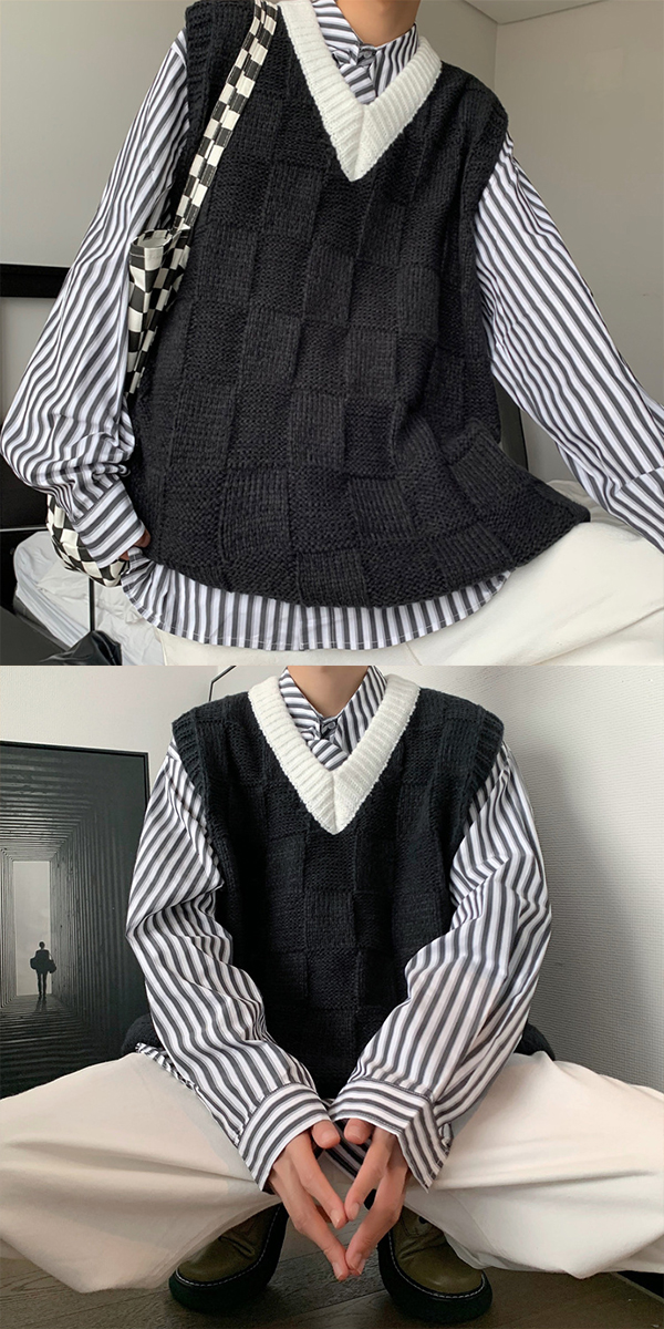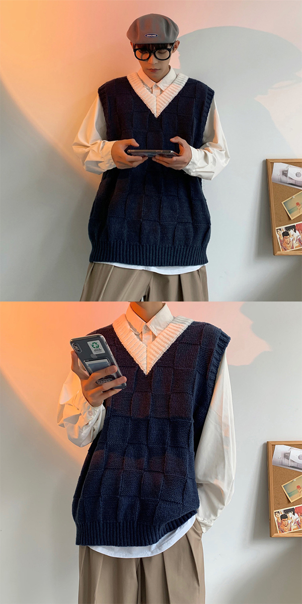 ニットベスト メンズ ベスト セーター Vネック レイヤード ルーズフィット オーバーサイズ 厚地 秋冬