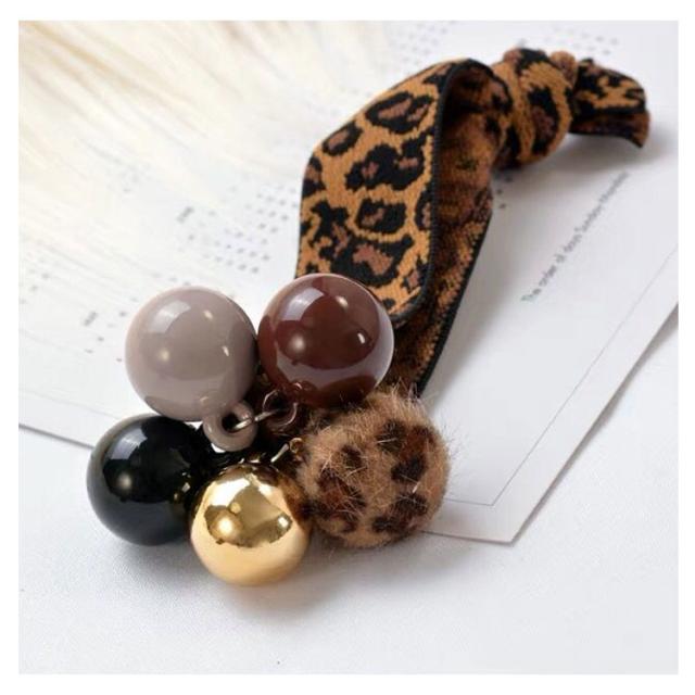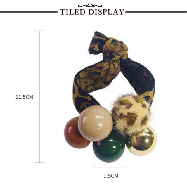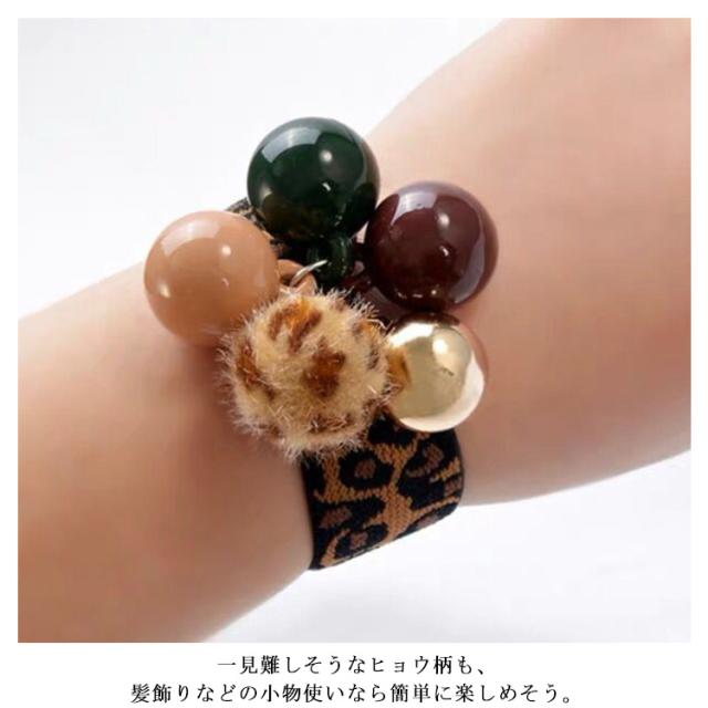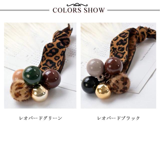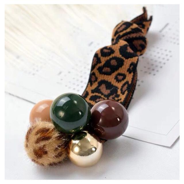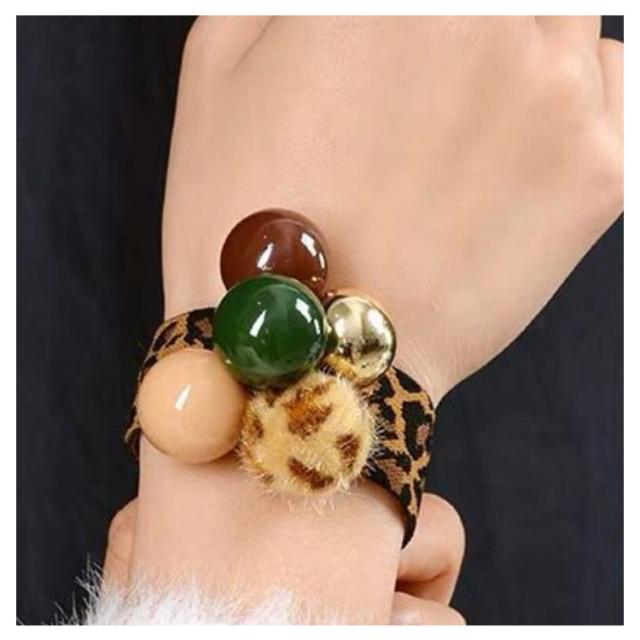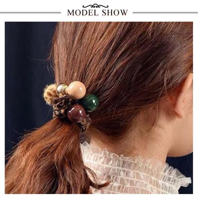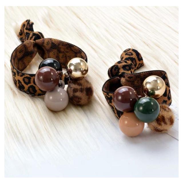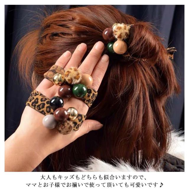 ヘアゴム 2種類 もふもふ グリーン玉 ブラック玉 カラーパール 髪飾り ヘアアクセサリー ポンポン ヒョウ柄 レオパード ヘアクリップ 髪留め ヘアアレンジ アクセント レディース 大人 キッズ 韓国