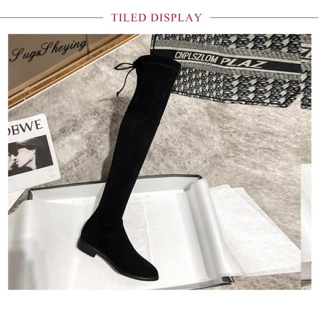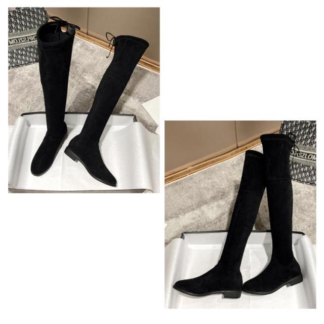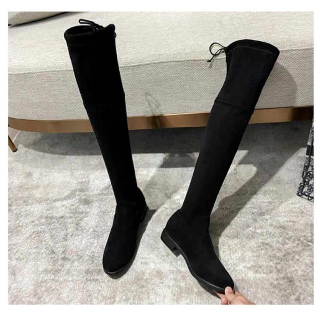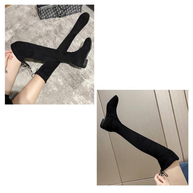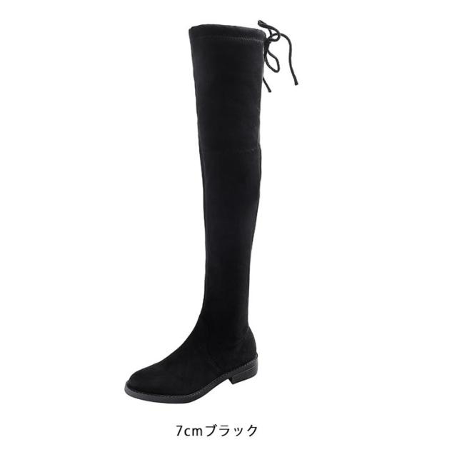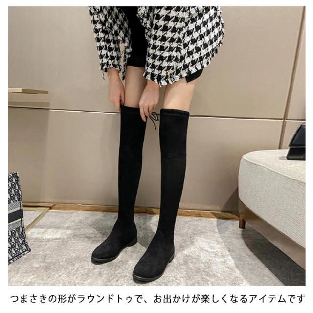 ロングブーツ ニーハイブーツ レディース 大きいサイズ 細身 厚底 美脚 スエード 疲れない 歩きやすい ローヒール 秋冬 細見せ