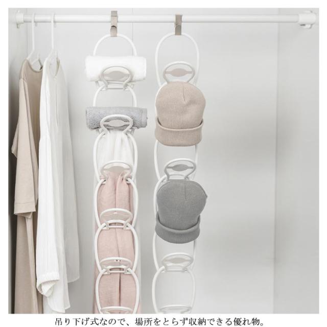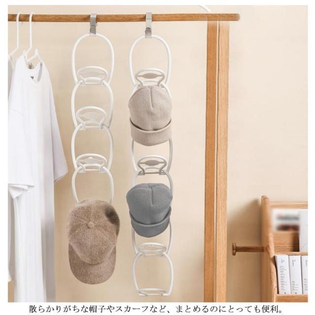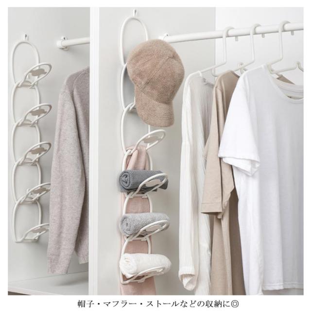 | 帽子・マフラー・ストールなどの収納に◎ 吊り下げ式なので、場所をとらず収納できる優れ物。 つなげるハンガーの数によってお好みの長さに調節可能。 寝室や子供部屋などのクローゼットの折れ戸にも使用できます。 | |