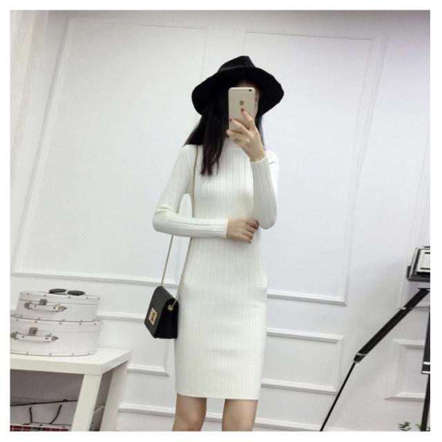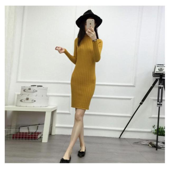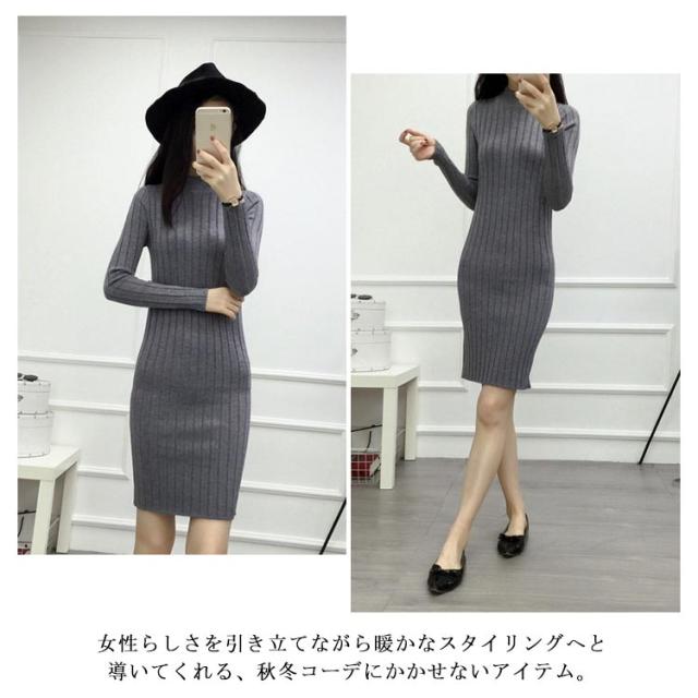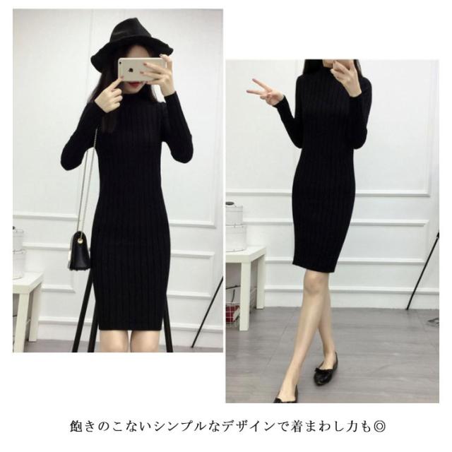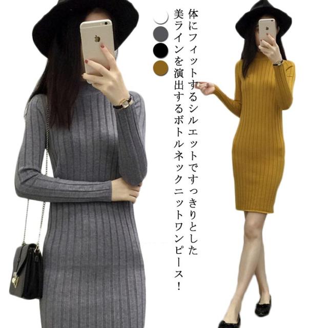 全4色×4サイズ!ニットワンピース ニット ワンピ 膝上ワンピース ボトルネック ハイネック ニットソー ロングニット タイトワンピース スリム レディース 長袖 タイト 細身 無地 シンプル 秋冬