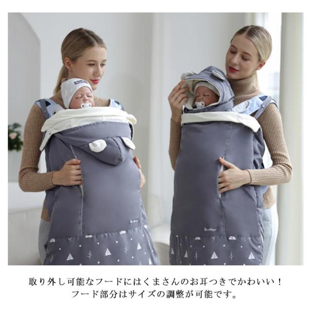 | 抱っこ、ベビーカー、おんぶ対応の3WAY! 内側が全面ボア仕様で、軽くてあったかい、ふわふわの肌触りが気持ちいい! 取り外し可能なフードにはくまさんのお耳つきでかわいい!フード部分はサイズの調整が可能です。 ベビーカーにつけてブランケットとしても使用可♪ 取付け方もとっても簡単なので、忙しい時でもサッとお出掛けが出来ちゃいます♪ 隙間ができない!ウエストベルトで保温性がUP! 下部はU型状になっているので赤ちゃんの足元をすっぽり包み込んで温めます。 ハンドマフに手を入れればママの手もあったかい♪ 冬のお出かけをもっと楽しく、また快適にサポートします。 | |