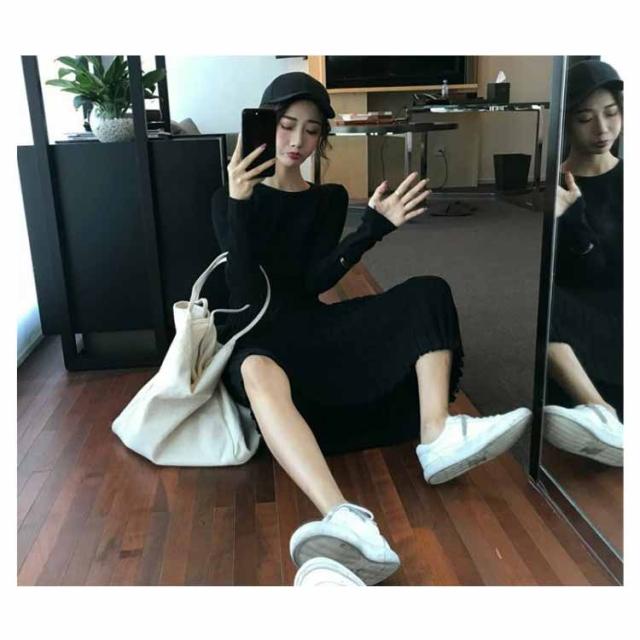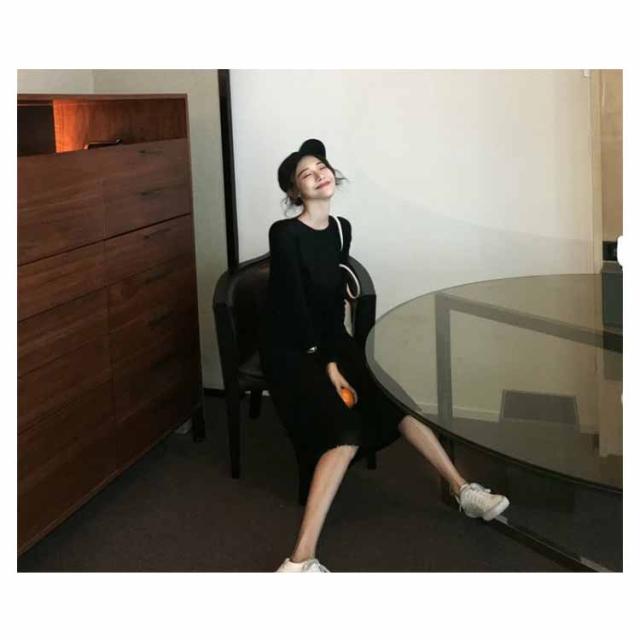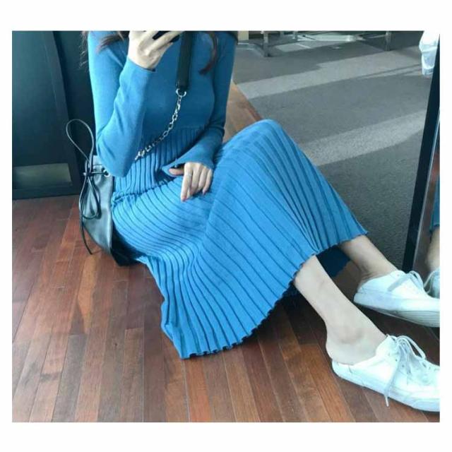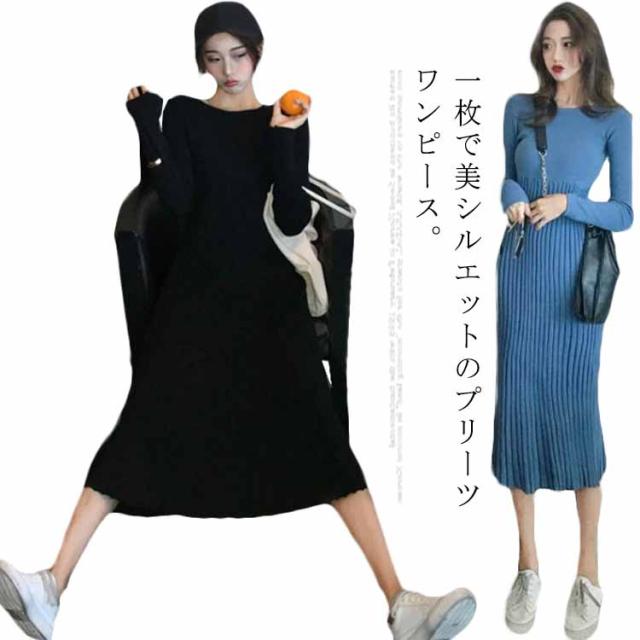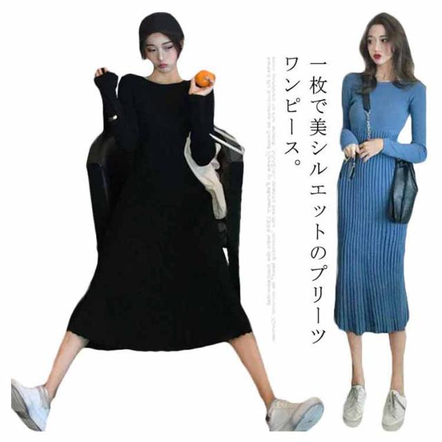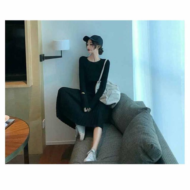 ニットワンピ ニットワンピース プリーツスカート 切り替え ハイウエスト Aライン きれいめ レディース 春秋 ワンピース ニット ストレッチ おしゃれ 着痩せ 無地 カジュアル 通勤 デート