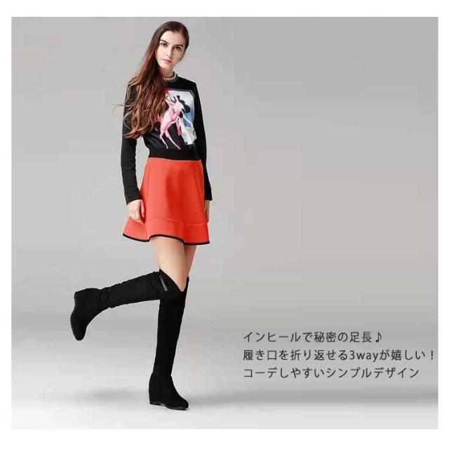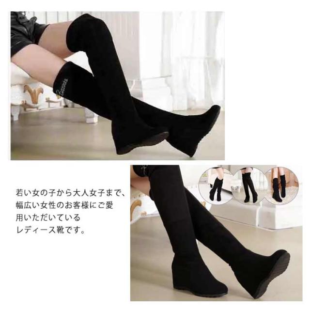 | インヒール ニーハイブーツ 長時間歩いても疲れにくいニーハイブーツ インヒールで秘密の足長♪ 履き口を折り返せる3wayが嬉しい! コーデしやすいシンプルデザイン 靴の中にヒールが入っているブーツだから、 ぱっと見はぺたんこの靴なのに、背が7cm高くなっちゃいます。 一日中はいても辛くない楽な履き心地です。 つまさきの形が丸いから、指に優しい履き心地で長時間歩いても痛くなりにくい優秀ブーツです。 若い女の子から大人女子まで、幅広い女性のお客様にご愛用いただいているレディース靴です。 | |