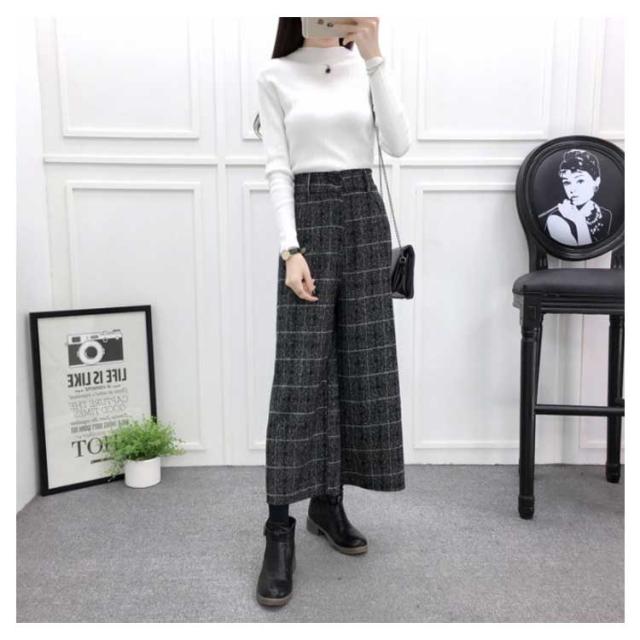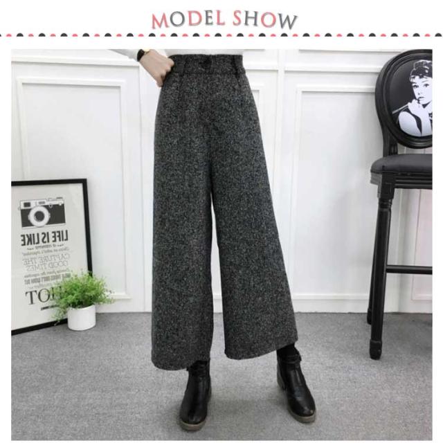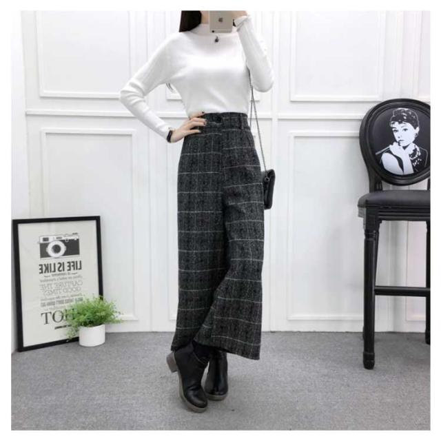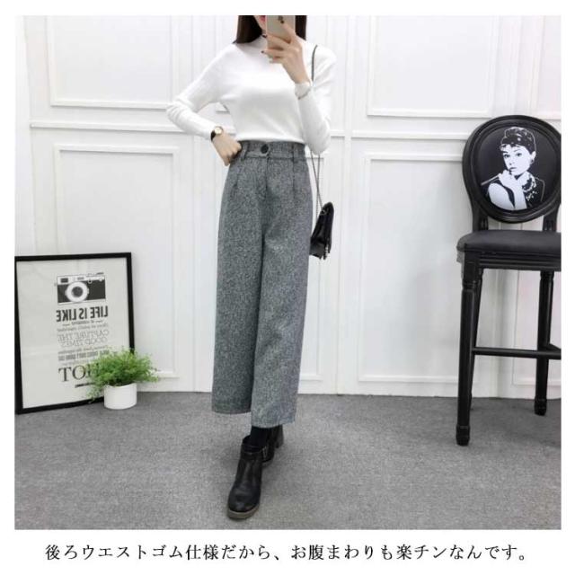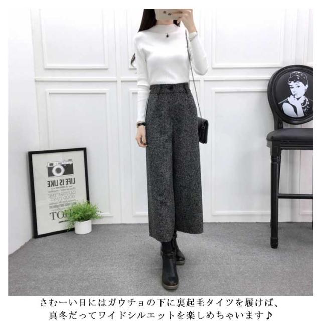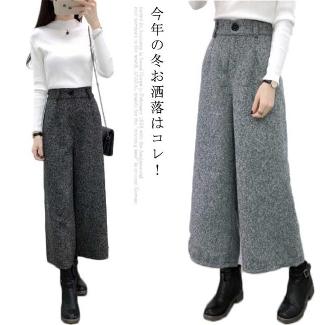 ガウチョパンツ 秋冬 レディース ワイドパンツ ロング丈 ミモレ丈 無地 チェック ガウチョ パンツ ハイウエスト ウエストゴム ウール調 ボトムス 大人 美脚