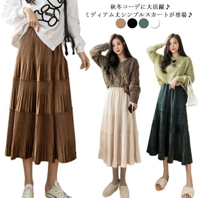 コーデュロイスカート ロング丈 ミモレ丈 ミモレスカート ロングスカート フレアスカート Aラインスカート 秋冬 スカート ロング 上品 可愛い かわいい シンプル きれいめ