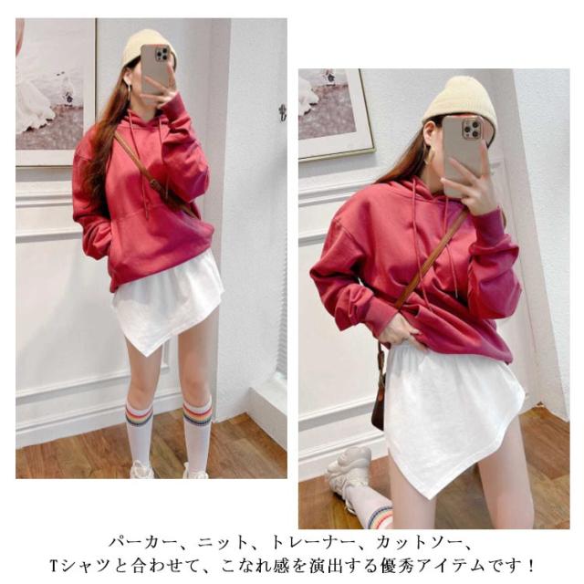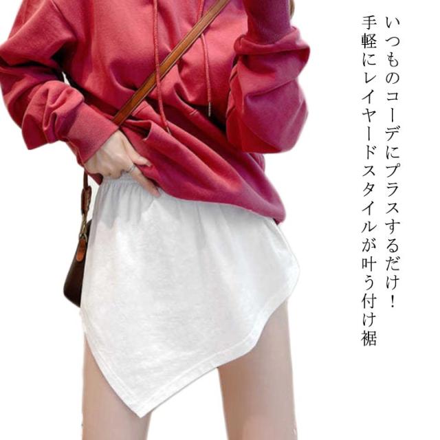 不規則 付け裾 つけ裾 レイヤード インナー レイヤードカットソー 裾フレア 裾フリル ウエストゴム ミニスカート スリットレイヤード