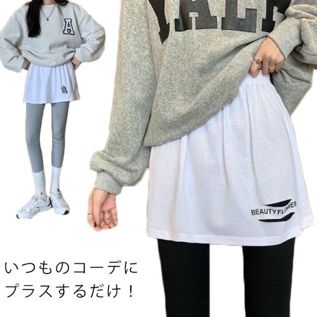 刺繍 プリント 付け裾 つけ裾 レイヤード インナー レイヤードカットソー 裾フレア 裾フリル ウエストゴム ミニスカート スリットレイヤード