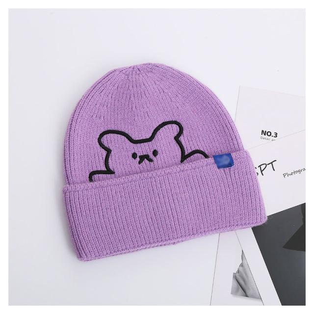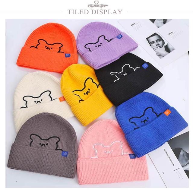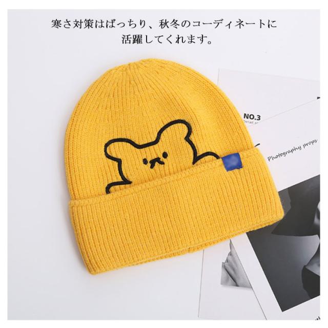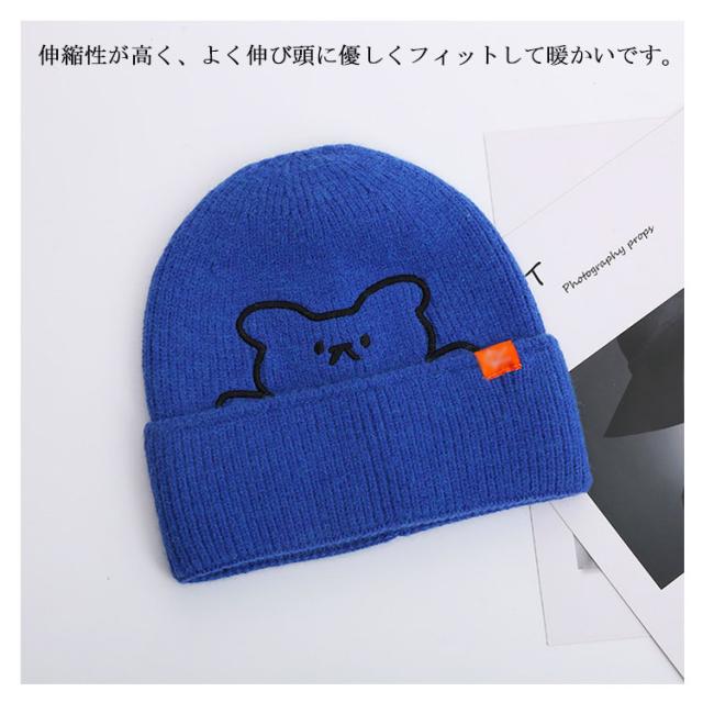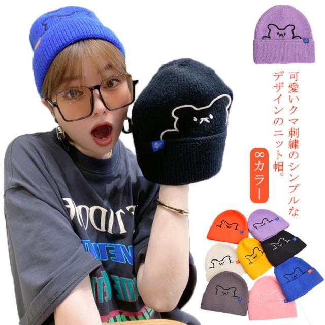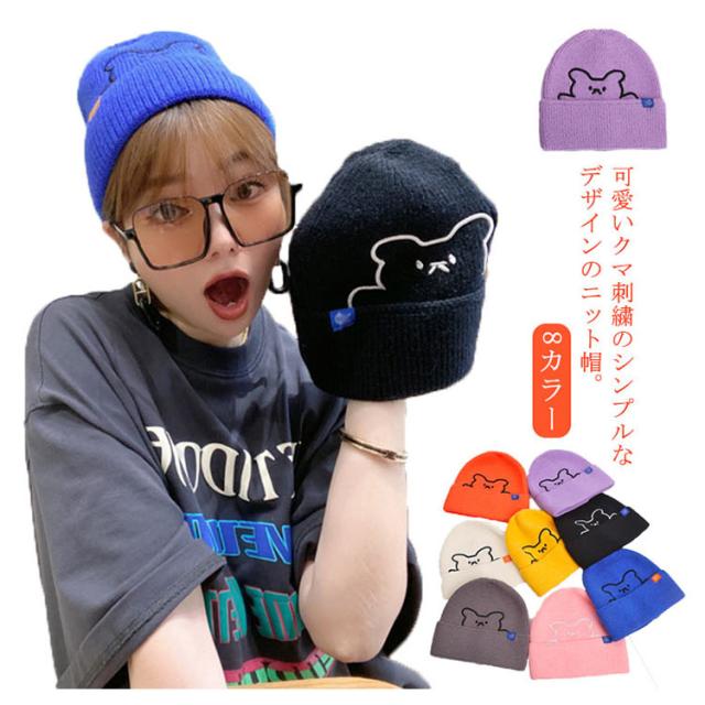 ニット帽 レディース 帽子 防寒 秋冬 かわいい クマ 熊 くま 刺繍 カラフル おしゃれ ファッション シンプル 保温 伸縮性 柔らかい 暖かい ニットキャップ 医療用帽子 プレゼント ギフト 送料無料