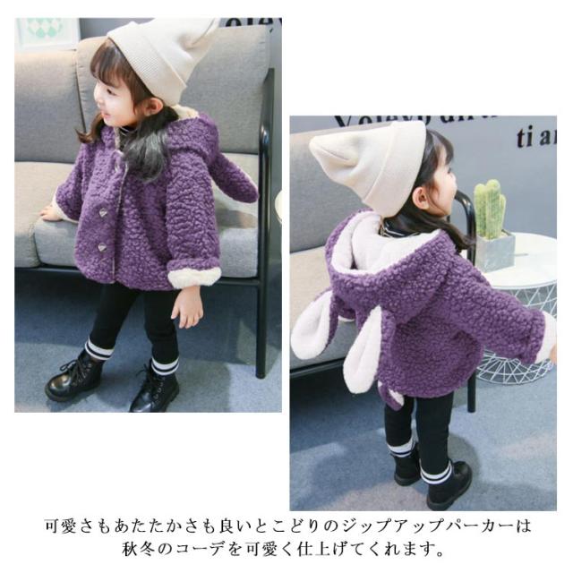 ボア ジャケット キッズ ベビー アウター ボアアウター もこもこボア フリース パーカー 耳付け ボア アウター 長袖 ふわふわ トップス 着ぐるみ コート 冬服 赤ちゃん 着ぐるみ 動物 耳 ベビー服 子供服