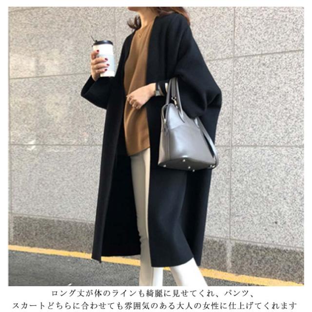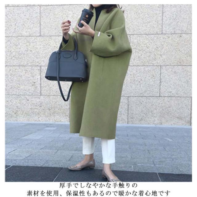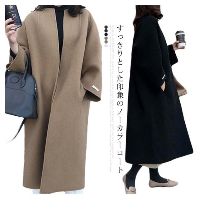 レディース アウター カジュアル ノーカラーコート コート シンプル ロングコート ロング丈 ノーカラー コート 女の子 冬 高見え 上品 あったか