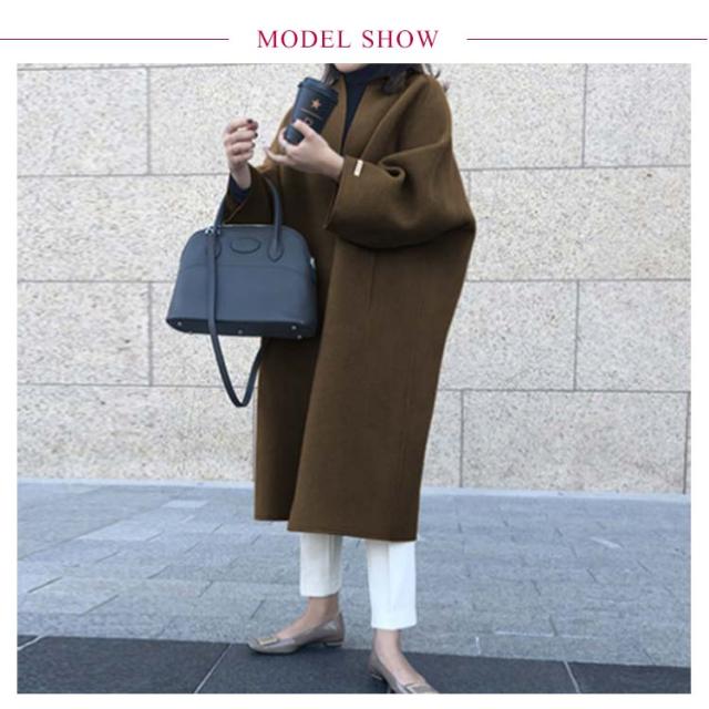 | すっきりとした印象のノーカラーコート 厚手でしなやかな手触りの素材を使用、保温性もあるので暖かな着心地です ロング丈のコートなのでヒップや脚をカバー出来ます さらっと羽織れてシンプルでなアイテムなので着回しがとてもしやすいです ボタンレスなので脱ぎ着もしやすいです ロング丈が体のラインも綺麗に見せてくれ、パンツ、スカートどちらに合わせても雰囲気のある大人の女性に仕上げてくれます | |