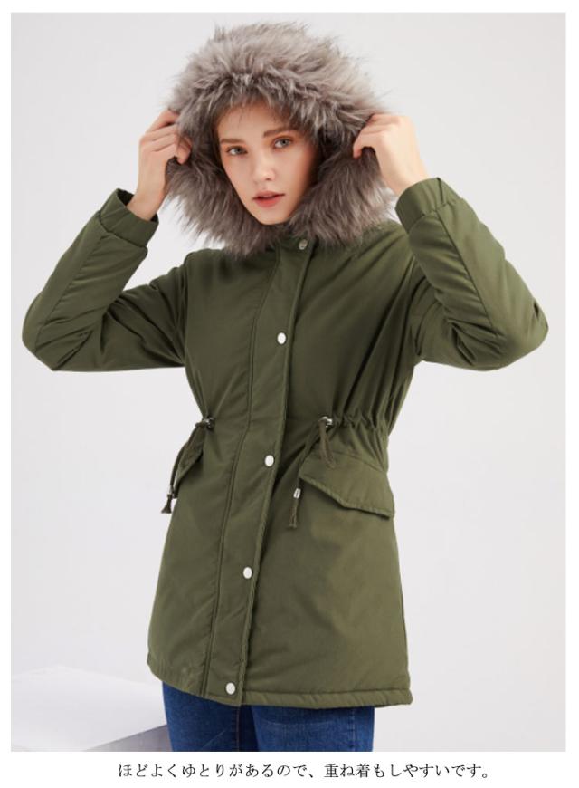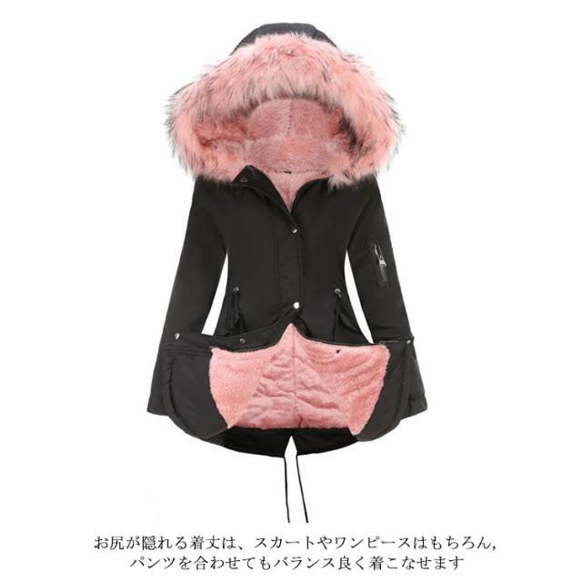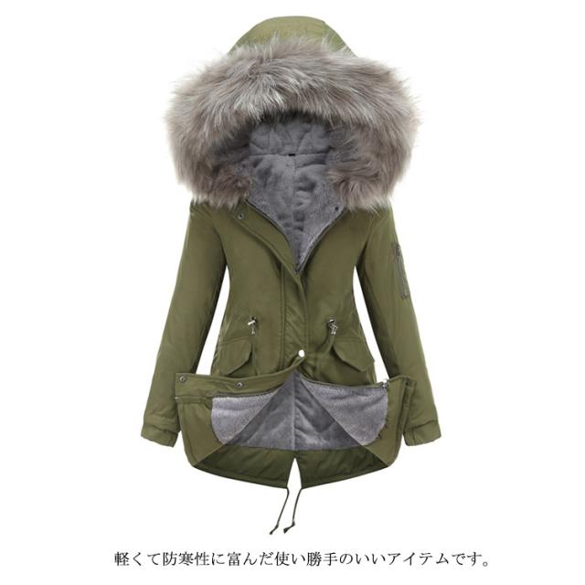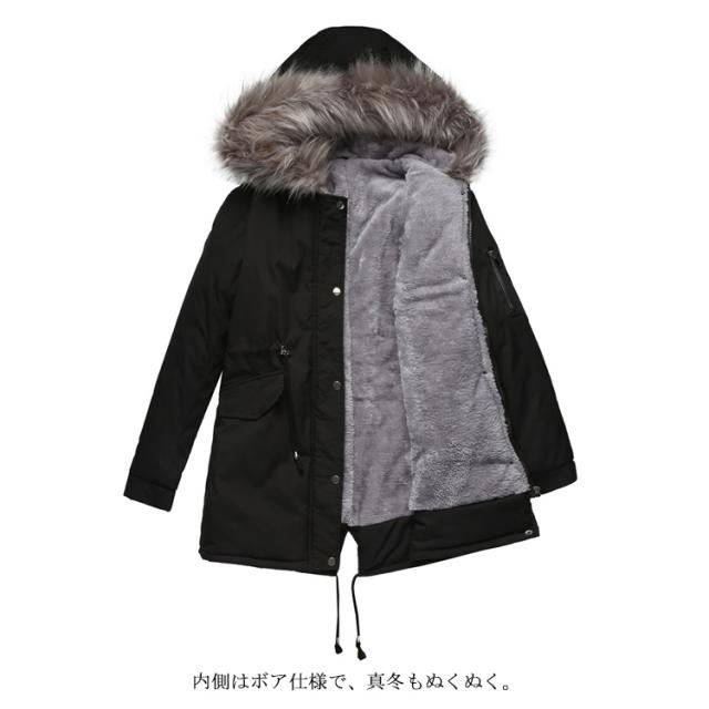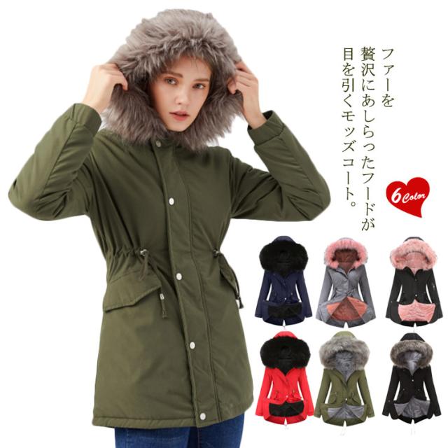 モッズコートレディース 裏ボア 裏起毛 ミリタリーコート ロングコート 長袖 フード付 ファー付き フェイクファー アウター ジャケット ロング コート ミドル丈 もこもこ 暖かい 防寒 大きいサイズ 無地