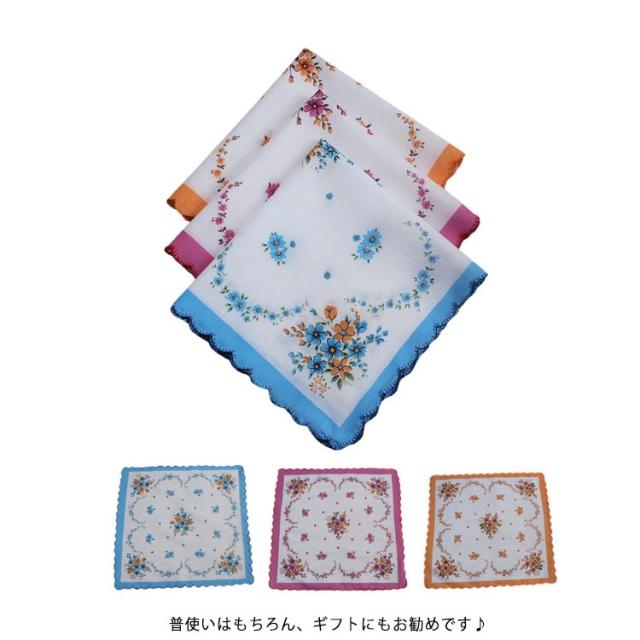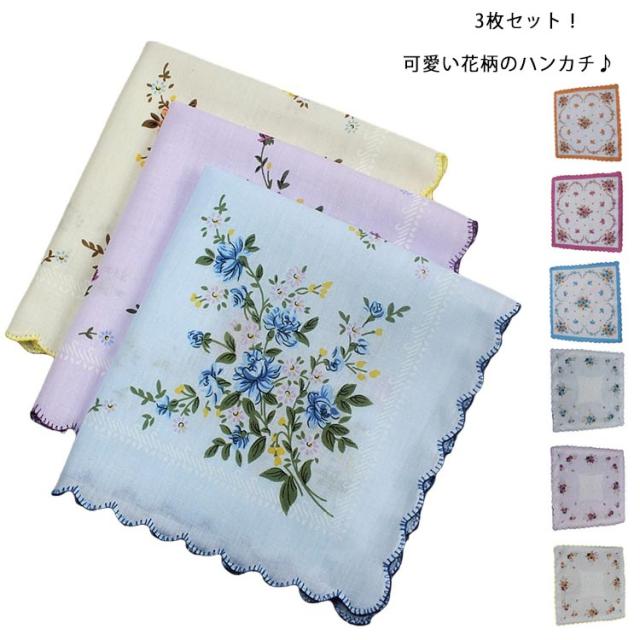 ハンカチ レディース 3枚セット 花柄ハンカチ プリントハンカチ かわいいハンカチ 花柄 綿 コットン 可愛い おしゃれ 送料無料 女性 雑貨 お土産 挨拶 転勤 退職 お礼 送別会 引っ越し お返し ギフト プチギフト プレゼント