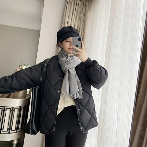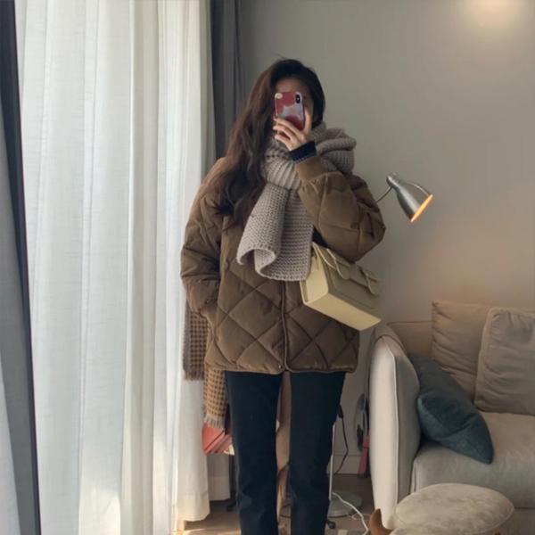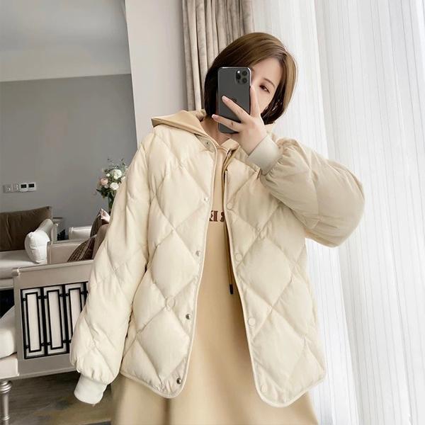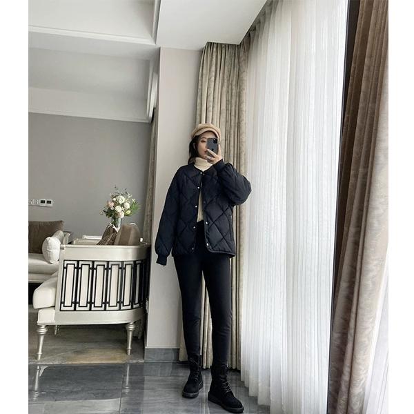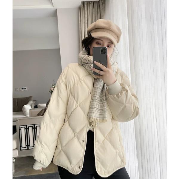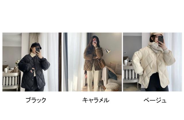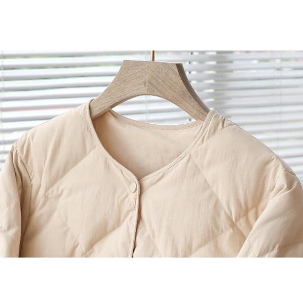 ダウダウンジャケット レディース ダウンコート 軽量 ノーカラー ショート ジャケット トップス 体型カバー ショート丈 菱形 保温 防寒 暖かい かわいい カジュアル ダウン 秋冬 冬物