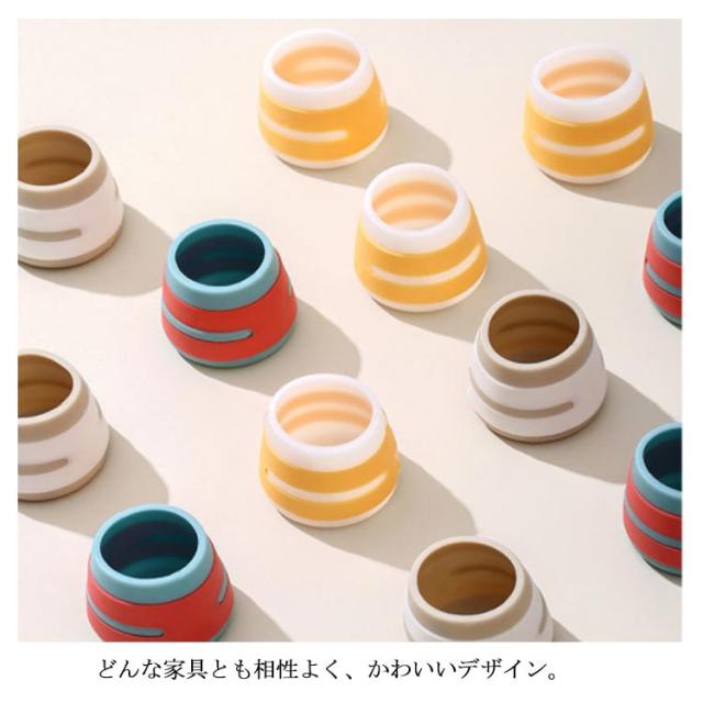 | おしゃれなシリコン製の椅子脚カバー。 柔らかなシリコン素材で防水、洗いやすく繰り返し使用可能♪ 床傷防止、騒音防止、滑り防止、湿気・カビ防止などに。 底には凹凸加工で滑りにくいです。 取り付け簡単!伸びてしっかり椅子足をフィットするだけ! 円形や長方形、正方形などどんな形のイス足にも対応できます。 どんな家具とも相性よく、かわいいデザイン。 | |