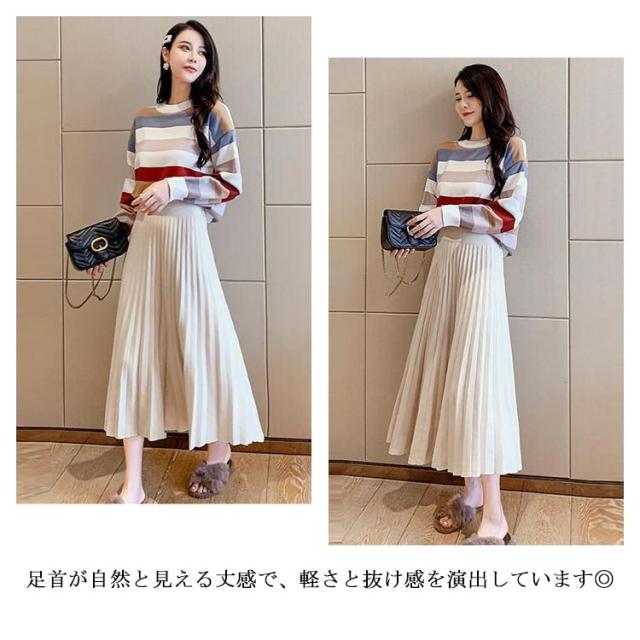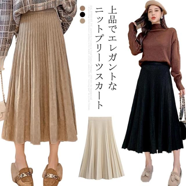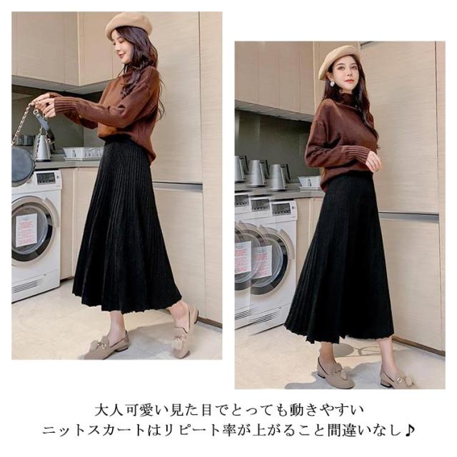 スカート ニットスカート プリーツスカート ロングスカート ボトムス ニット ロング ウエストゴム Aライン ニットプリーツスカート 大人かわいい 春 秋 冬 大きいサイズ レディース おしゃれ 人気