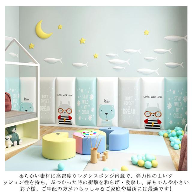 | 頭がぶつかっても怪我しない、痛くないからお子様の安全を強力に守ってくれる壁クッション。 柔らかい素材に高密度ウレタンスポンジ内蔵で、弾力性のよいクッション性を持ち、ぶつかった時の衝撃を和らげ・吸収し、赤ちゃんや小さいお子様、ご年配の方がいらっしゃるご家庭や場所には最適です! ご自宅のベッド周りや保育園・幼稚園の遊び場などの壁に設置するだけで、走ったり遊びながら育つ子供たちも安心のウォールマット。 | |
