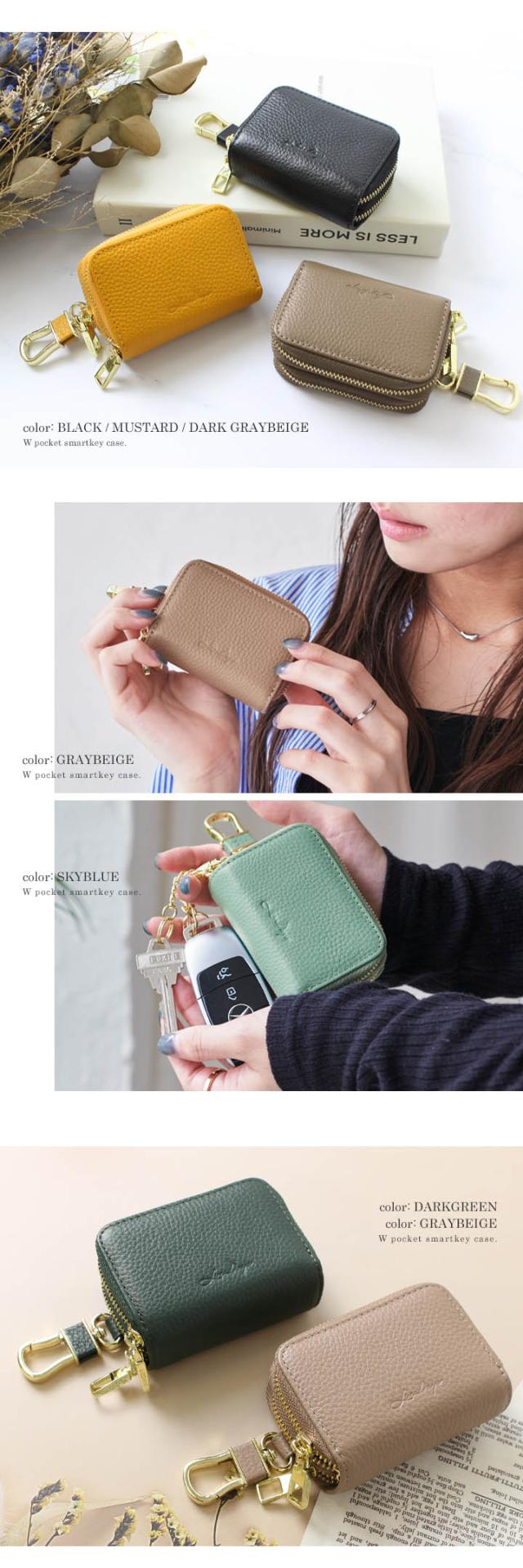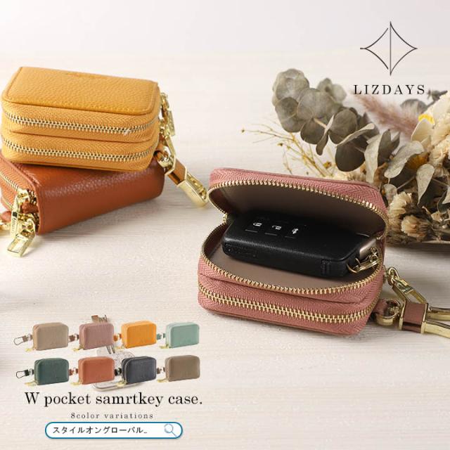 キーケース 本革 スマートキーケース レディース メンズ スマートキー 2個収納 ケース コンパクト ダブルファスナー カラビナフック おしゃれ LIZDAYS リズデイズ 大人 牛革 レザー シンプル ユニセックス 男女兼用 高見え【lz-68108】