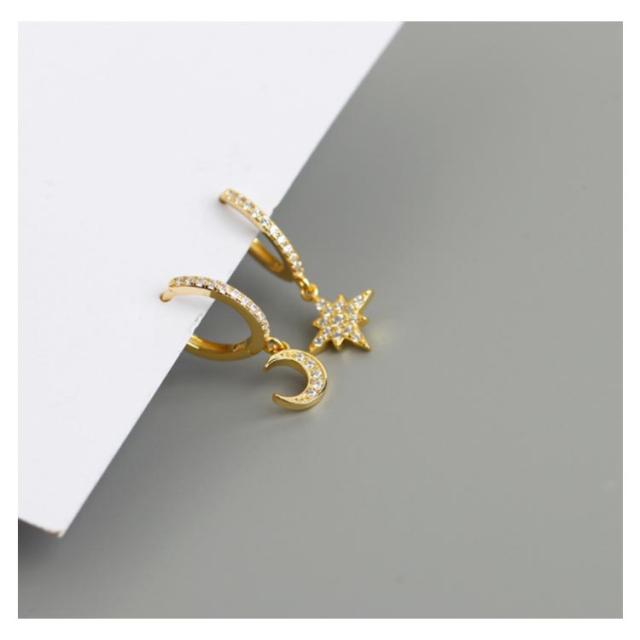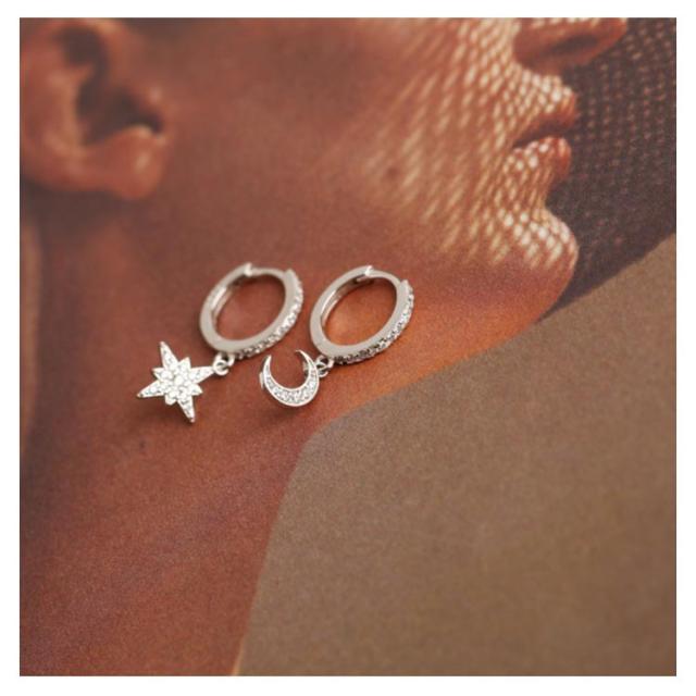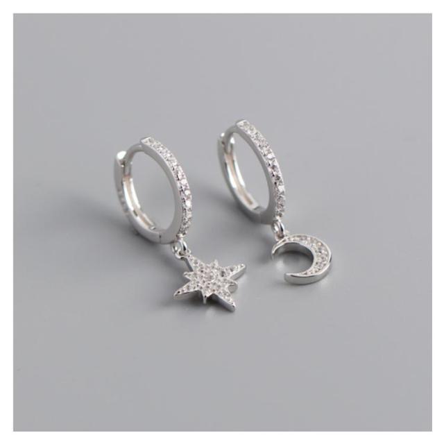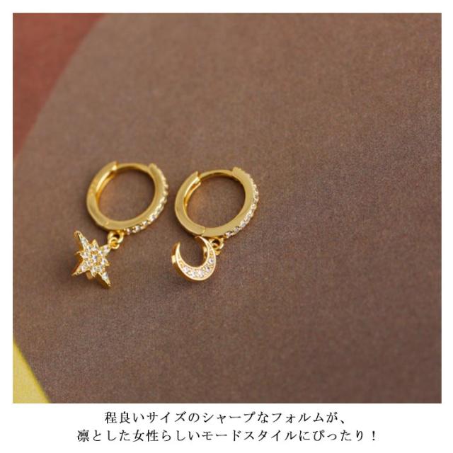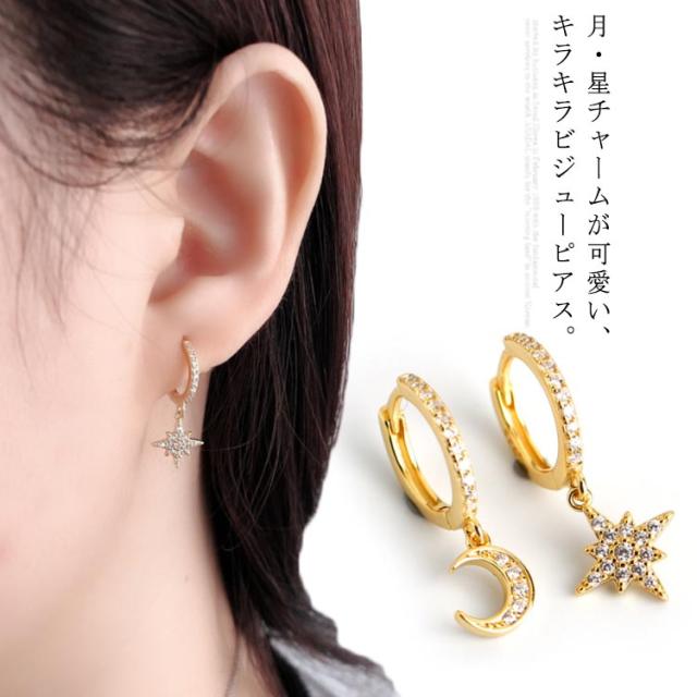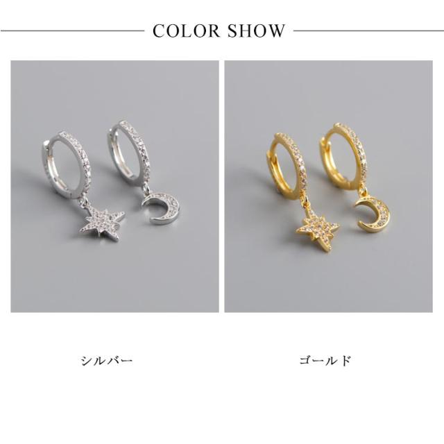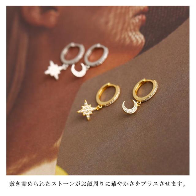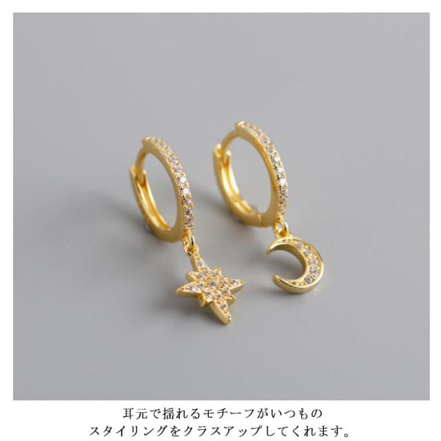 ピアス イヤリング シルバー925 シルバーピアス レディース フープピアス 月 星 チャーム 揺れる ビジュー キラキラ 耳飾り ピアス アクセサリー SV925 可愛い お洒落 痛くない 高級感 光沢 お洒落 大人 上品 華奢 きれいめ