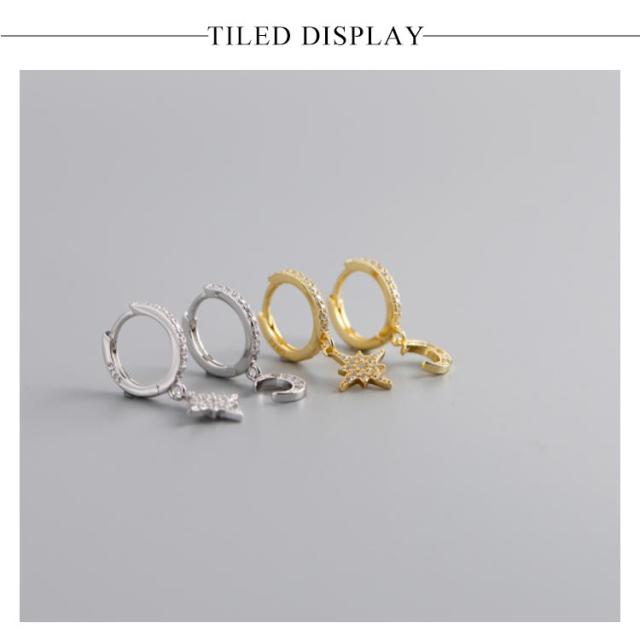 | 耳元でキラキラ輝くスターピアス。 動くたび揺れて、さりげなく女性らしさをアップ。 パーティーやイベントのコーデとの相性は良いが、普段使いでもお洒落で可愛い。 金属アレルギーの方も安心してお使いいただけるS925製。 | |