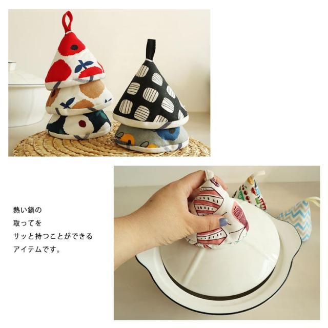 三角鍋つかみ 鍋つかみ ミトン 北欧 キッチンミトン 同色2枚セット 三角 三角帽子 綿 キッチン 台所 かわいい柄 コンパクト プレゼント ギフト お祝い 送料無料 キッチン雑貨 鍋 和風 調理器具 おしゃれ かわいい 引っ掛け紐付き
