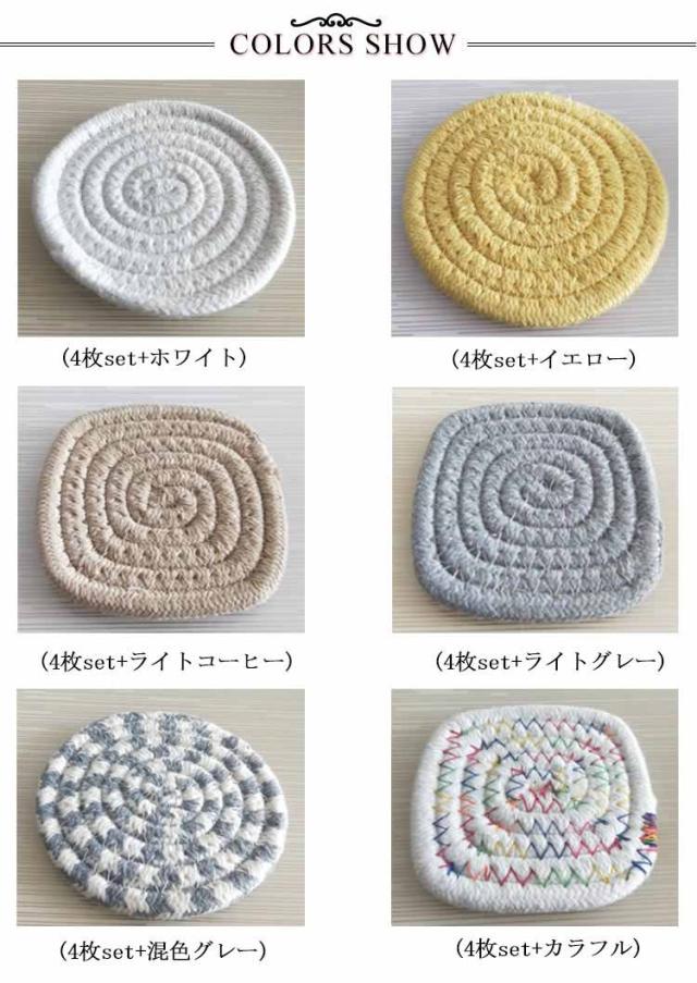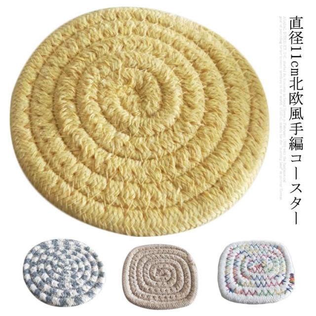 コースター 北欧 手編み おしゃれ 同色4枚セット カップマット 無地 直径11cm 編み物をする 耐熱 滑り止め 収納が便利です 送料無料 断熱パッド 茶パッド 鍋 碗 コップ敷き 卓上用品 キッチン雑貨