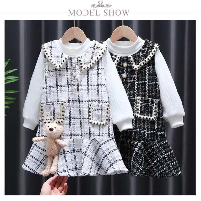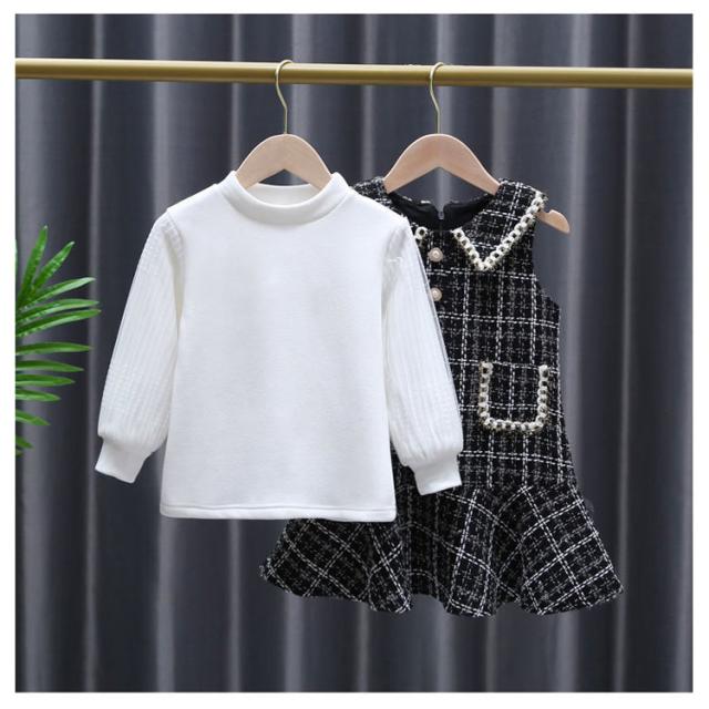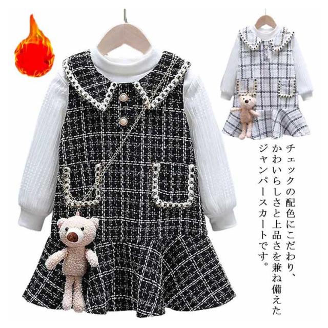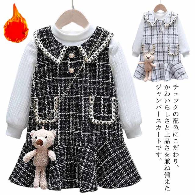 ジャンパースカート 2点セット 子供服 裏起毛 長袖 トップス 女の子 90〜140cm キッズ ベビー ジュニア オールインワン ワンピース チェック柄 セットアップ こども 子ども服 ドレス 保育園 小学校 秋冬 フォーマル カジュアル おしゃれ