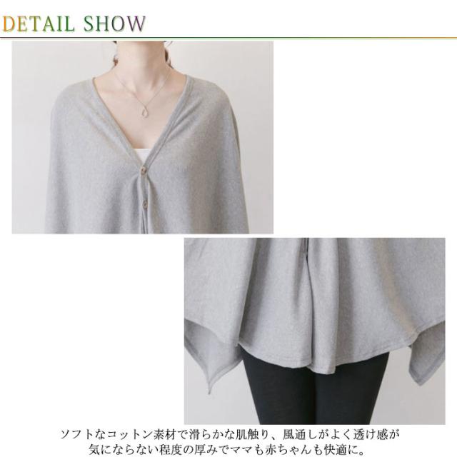 | 【選べる3タイプ】カーディガン、ポンチョ、斜めボタンの3タイプが用意しております。 【360°安心】たっぷり長めの生地で横腹もしっかりガード、360°しっかっり隠れて後ろからの視線も気になりません。 【肌触りいい】ソフトなコットン素材で滑らかな肌触り、風通しがよく透け感が気にならない程度の厚みでママも赤ちゃんも快適に。 【多機能】受乳時だけでなく肌寒い時には「防寒」、日差しの強い時には「日焼け防止」と大活躍します。そして、赤ちゃんの抱っこ用に、おんぶ用に! 【着回し】お洋服みたいなおしゃれなデザインとスッキリしたシルエットで、マフラーやカーディガンとしても活躍します。 いろいろな使い方で、育児タイムを楽しいものに。産前産後に使いまわしの利く便利なアイテムです! | |