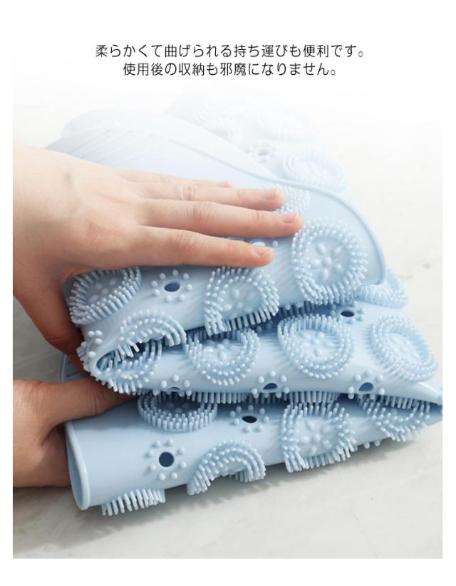 | 洗面所、バスルームなどの滑りやすい地面にピッタリのバスマットです。 表面に滑り止め模様があり、踏み心地も良く。疲れた体を癒やします。 柔らかくて曲げられる持ち運びも便利です。使用後の収納も邪魔になりません。 底面に強力吸盤でしっかり浴槽の底面や地面と吸着固定し、滑りや転倒を防ぎます。 透水穴の設計で水切れがよく、常に清潔で安心してご利用になります。 壁に吸盤で吸着できるので、収納に時間やスペースも掛からないです。 | |
