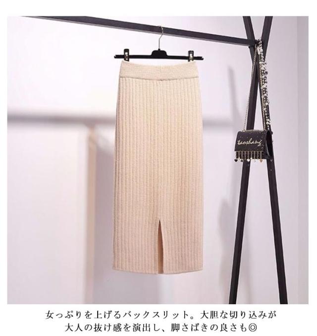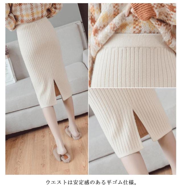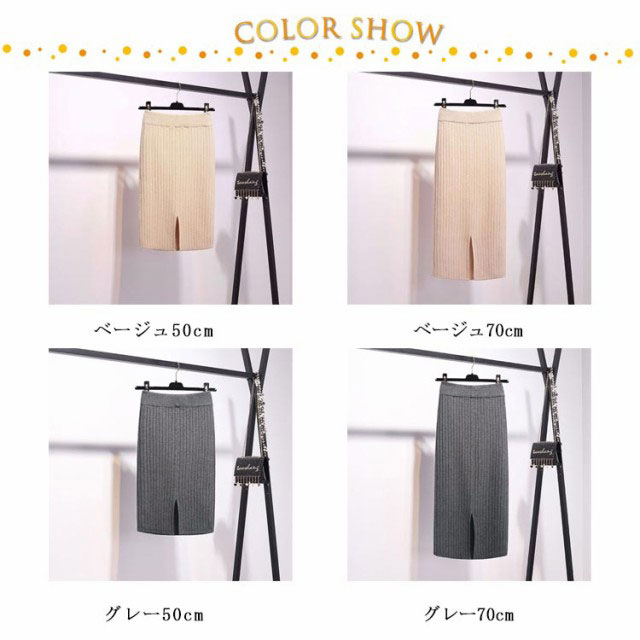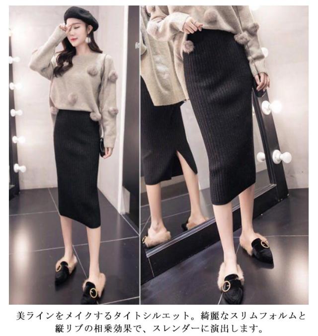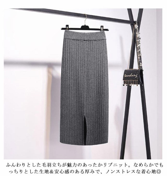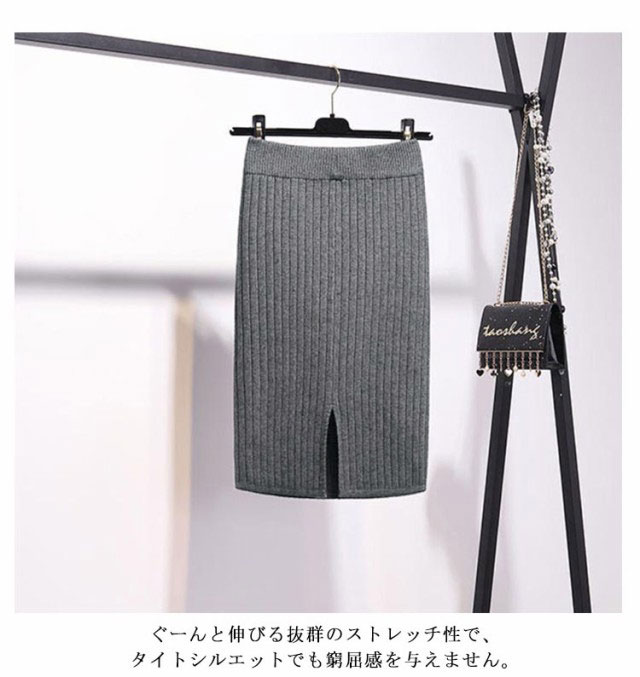 着丈50cm/70cm リブニットスカート タイトスカート ロングスカート ミモレスカート 膝丈スカート ニットスカート リブスカート スリットスカート ミモレ ロング バックスリット ウエストゴム 秋冬 無地 シンプル 送料無料