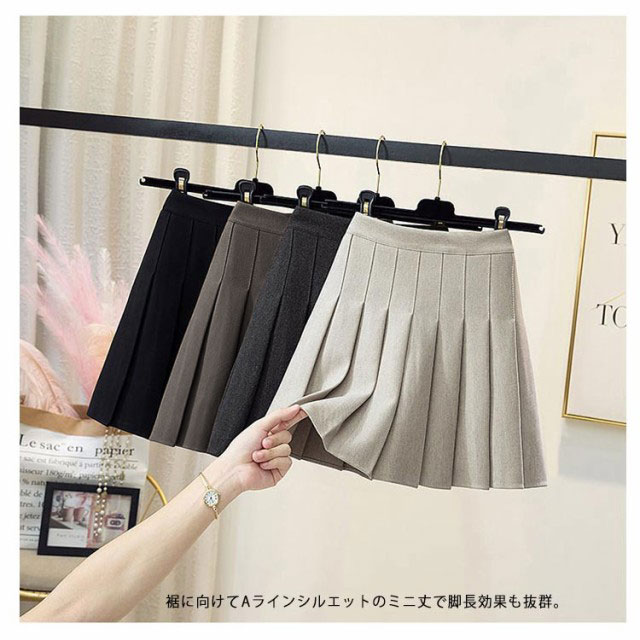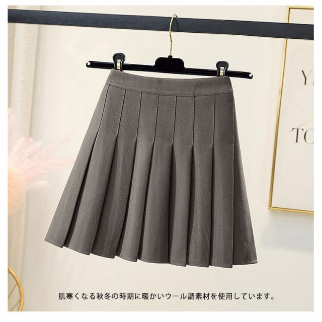 ミニスカート レディース プリーツスカート ハイウエスト Aライン フレアスカート 秋冬 ウール調